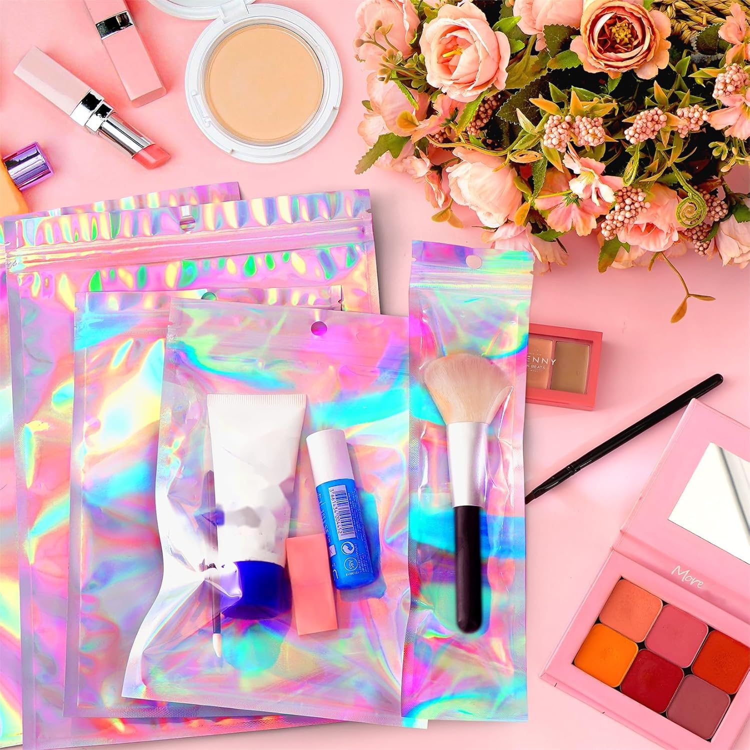 - 【Clear Window Holographic Bags】-Shiny smell proof holographic bags,shows beautiful rainbow color when lights refract in, perfect for display your sample items,give a professional impression to your customer!Mylar bags Clear Window allows you quickly see what insides.