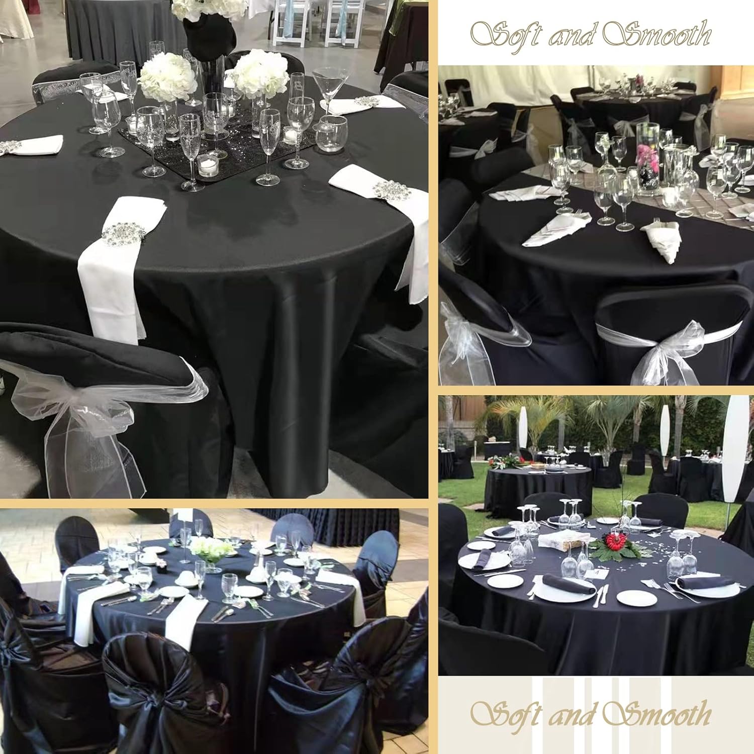 - 【Widely Applications】This black table cover is great for various of formal occasions, such as wedding, dinner, conference, celebration, ceremony, all kinds of parties etc.; it can be served as commonly used item or decoration for restaurant, hotel, kitchen, and family dining room, which can bring you a lot of convenience. It not only protects the table, but also adds a romantic, elegant, noble, comfortable and warm atmosphere.