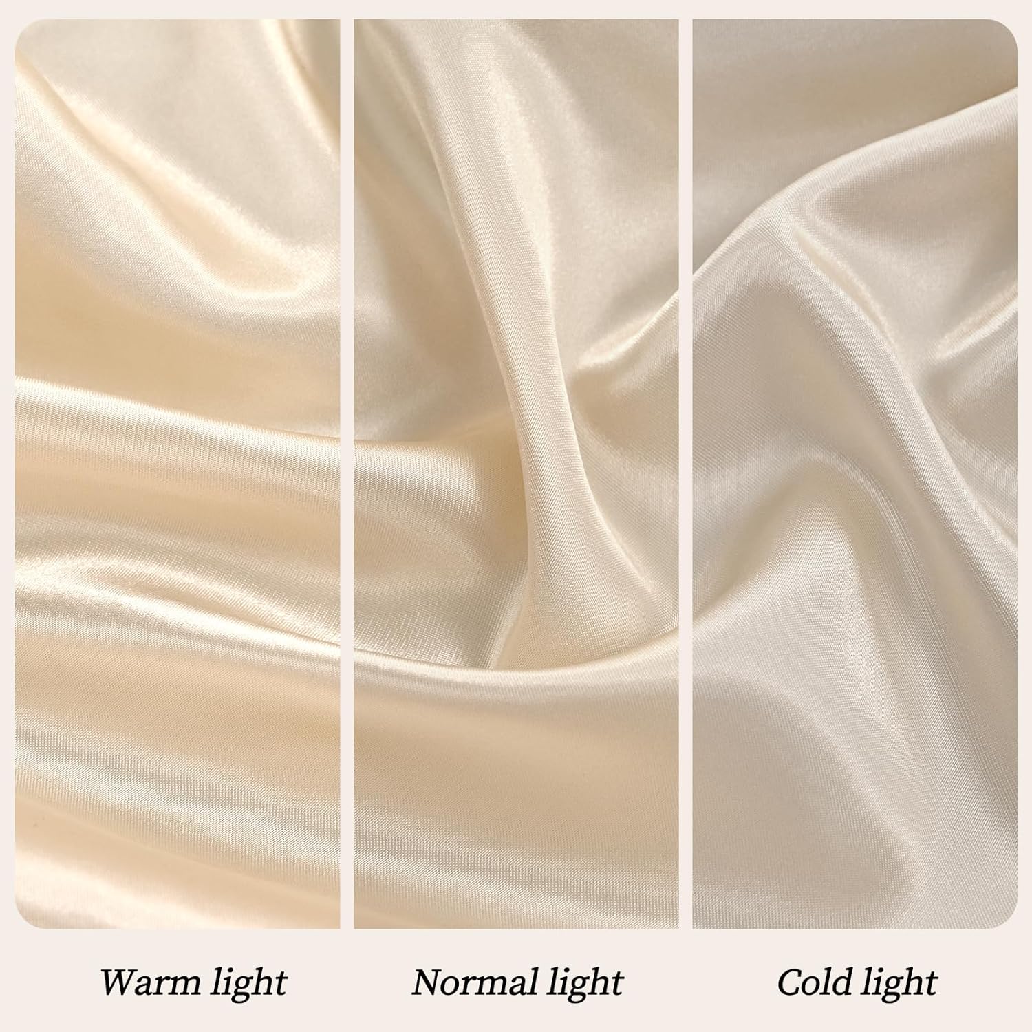 - đ¸ăPackage Includesă12 Pieces premium champagne satin round tablecloth. The size of silk satin table cover is 120 inches. You need to calculate whether a 120-inch tablecloth is suitable based on your desktop size and table height. Be sure to confirm the size before purchasing to avoid troubles caused by the size of the tablecloth.