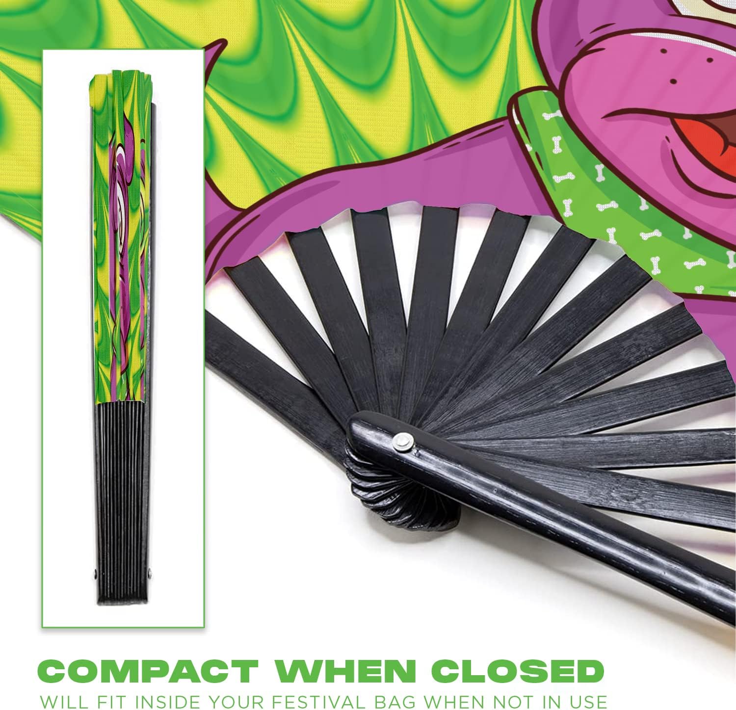 GloFX Rave Trippy Doggy Large Folding Fan - Music Festival Essentials, EDM Rave Accessories