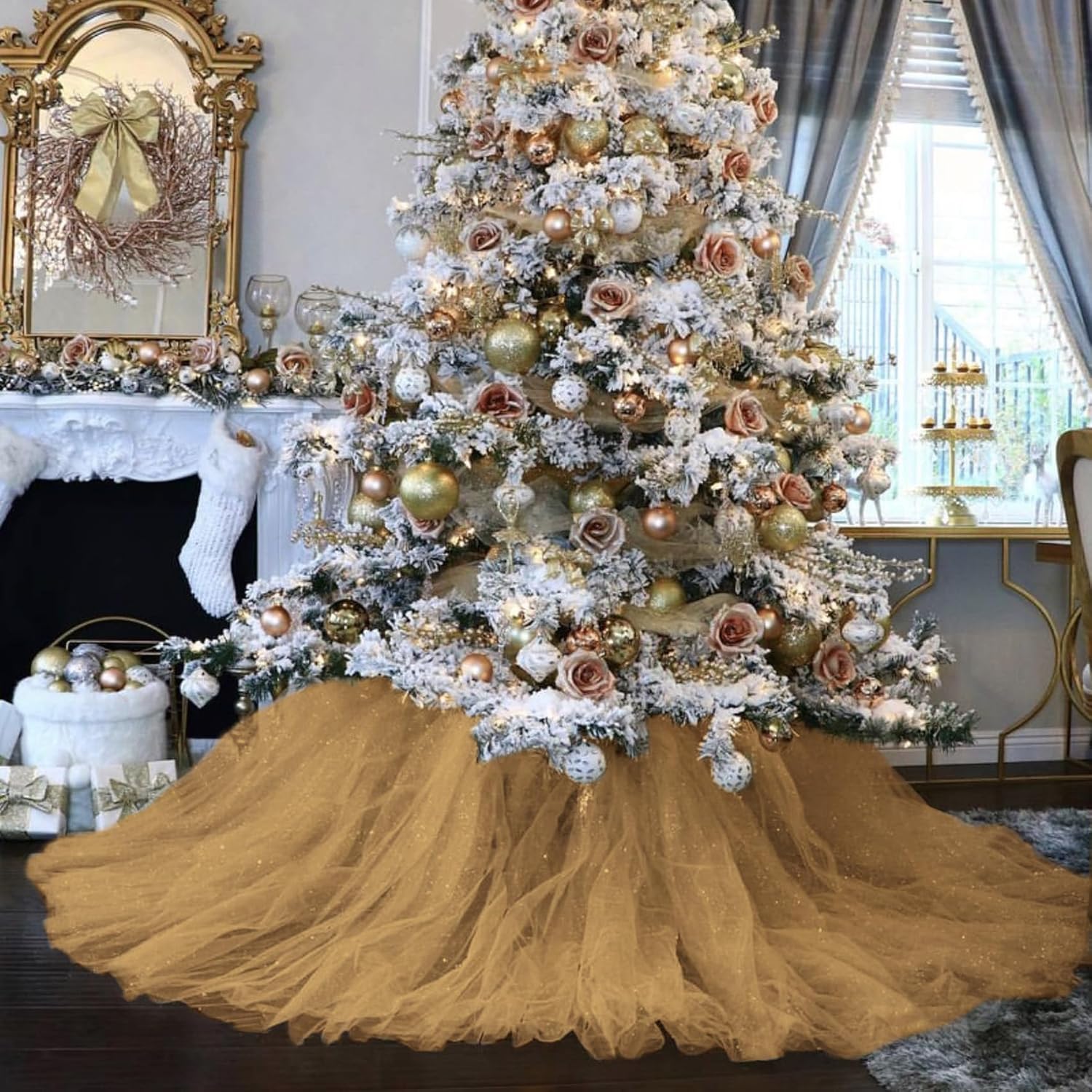 Aztec Gold Tulle Fabric Rolls 6 Inch by 100 Yards (300 feet) Fabric Spool Tulle Ribbon for Christmas Gift Wrapping DIY Tutu Bow Baby Shower Birthday Party Wedding Decorations Craft Supplies