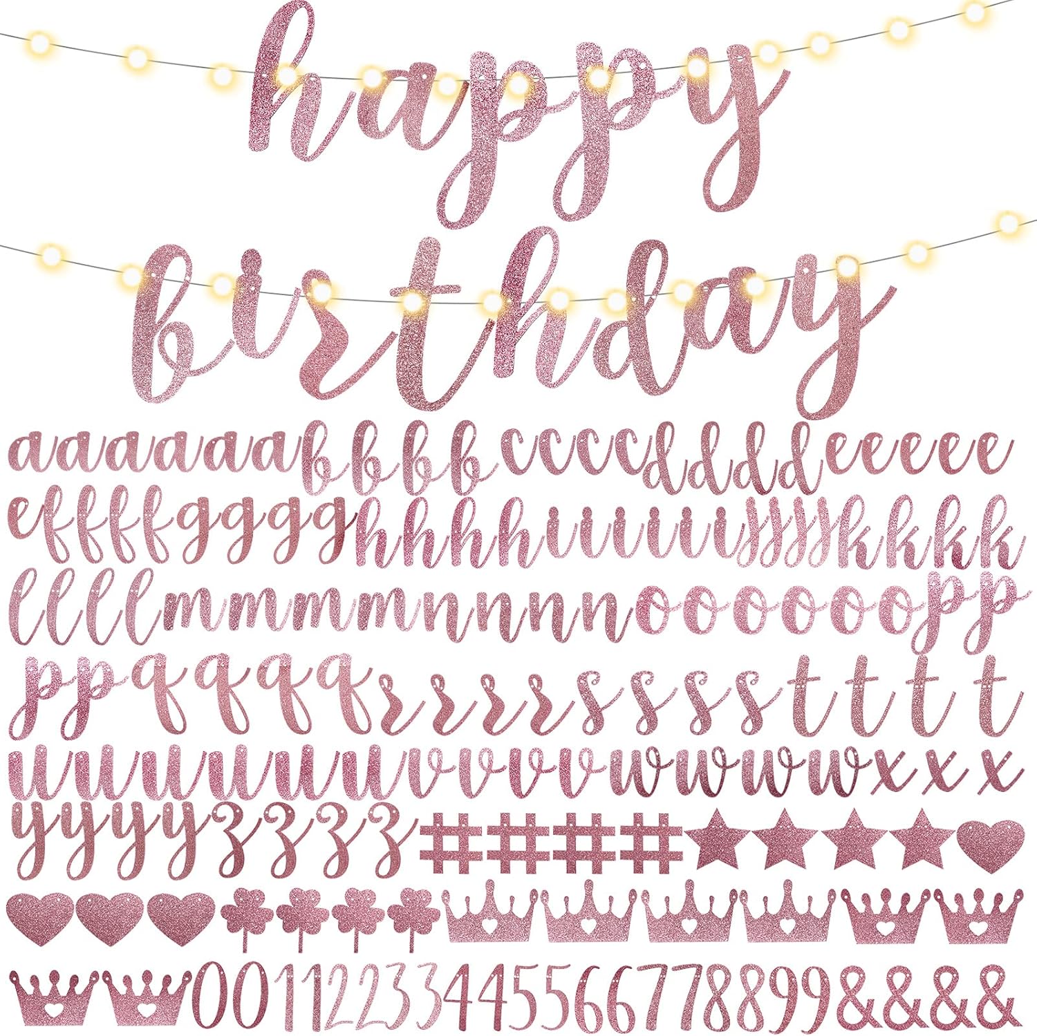 TaoBary 167 Pcs DIY Banner Kit Happy Birthday Glitter Banner Customizable Glitter Make Your Own Kit 162 Letters Symbols and Numbers 3 Rope for Birthday Halloween Wedding Christmas(Rose Gold)