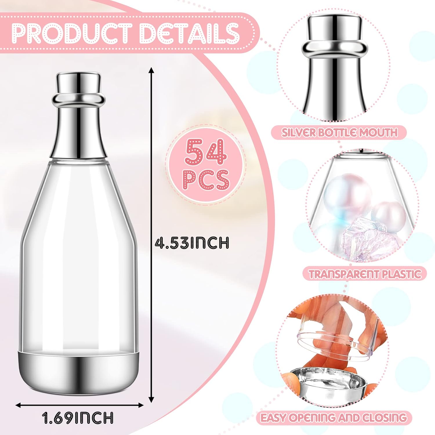 - Champagne Bottles Package: you will receive 54 pcs party favors in mini champagne bottle shape, approx. 11.5 x 4.3 cm/ 4.53 x 1.69 inches, which can accommodate most kinds of candy, chocolates or small DIY decorations, and they are nice choices for present boxes at baby shower, bridal shower or wedding