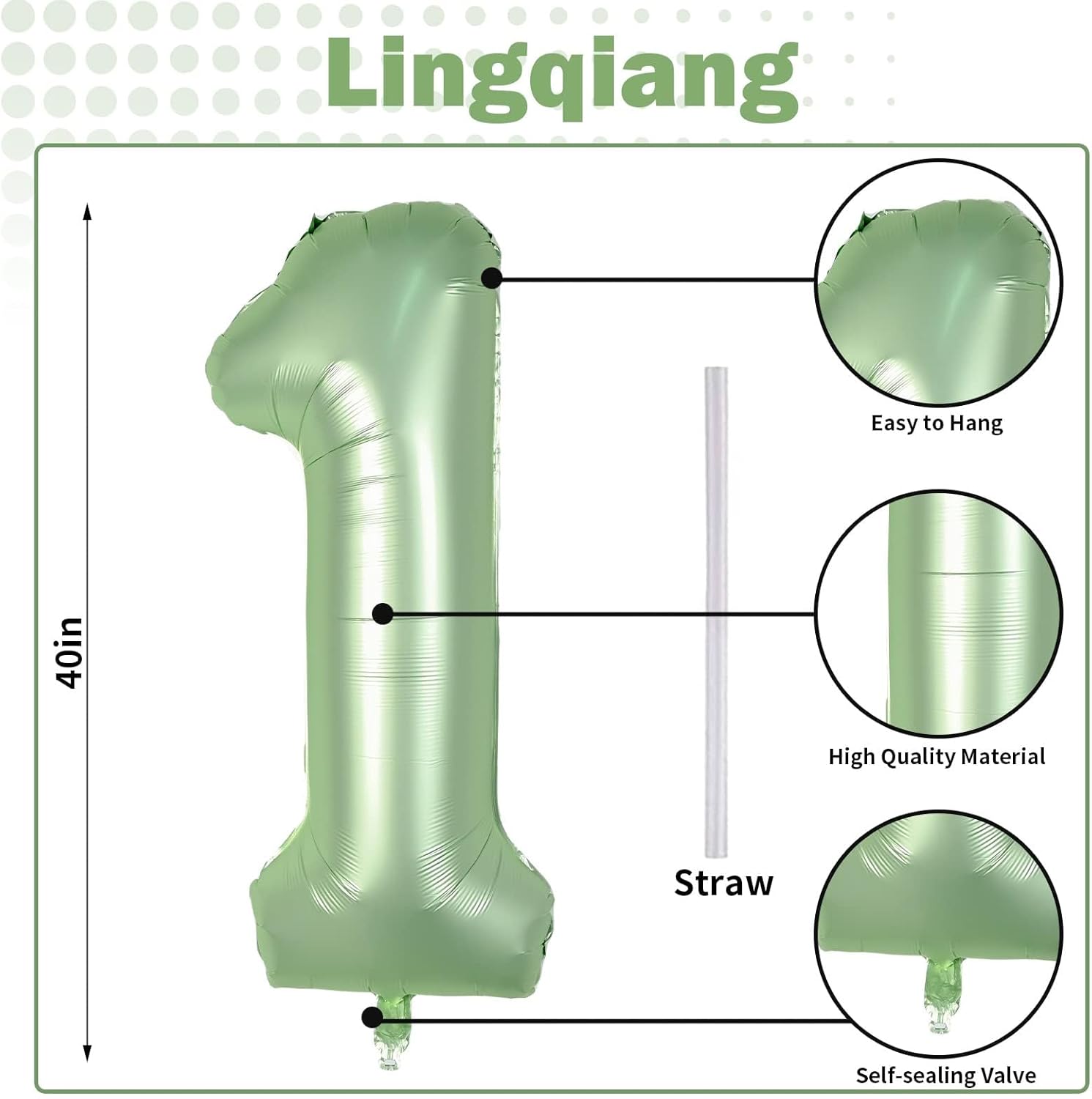 - π Sage Green Number 1 Balloon π - You will get 1pc 40 inch mylar foil number 1 balloon and 1pc straw. Perfect for 1st 10th 12th 13th 15th 16th 17th 18th 21st birthday or anniversary party decorations supplies.