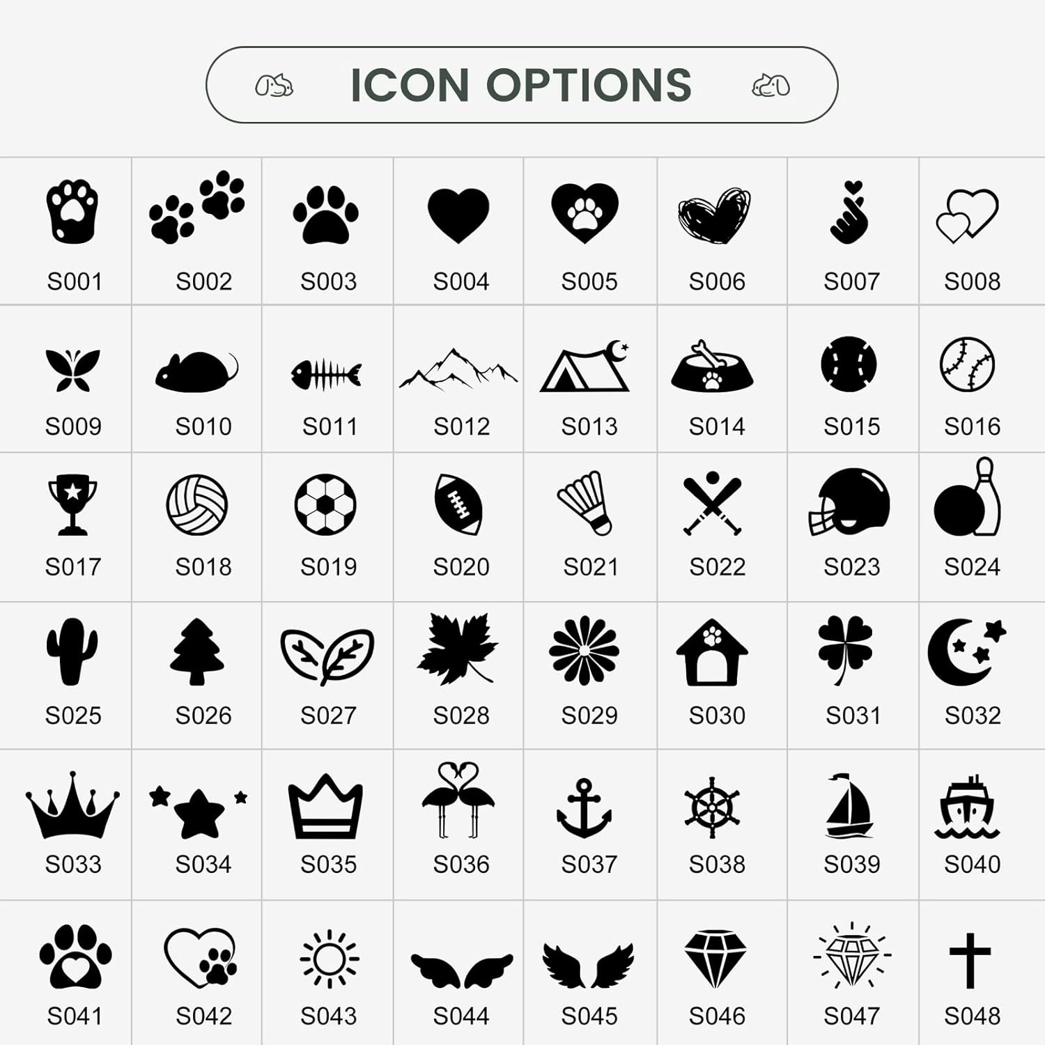 - Personalized Dog Tags: We offer a wide variety of icons and fonts for you to freely choose and design the dog tag style you want, creating a fashionable, beautiful and practical identification tag for your dog or other pets!