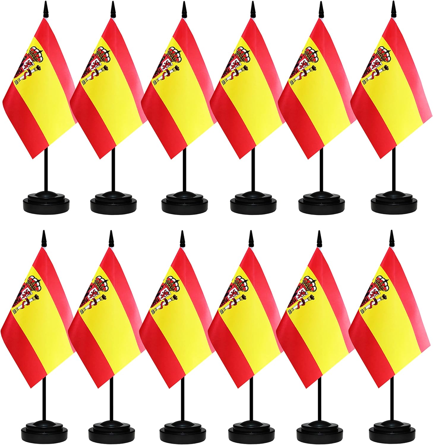 12 Pack Spain Desk Flags Set, Spanish Small Mini Table Office Flags With 12" Solid Black Pole, Black Base and Spear Top, Miniature Desktop Flag, Home Decoration, Office Decoration, Festival
