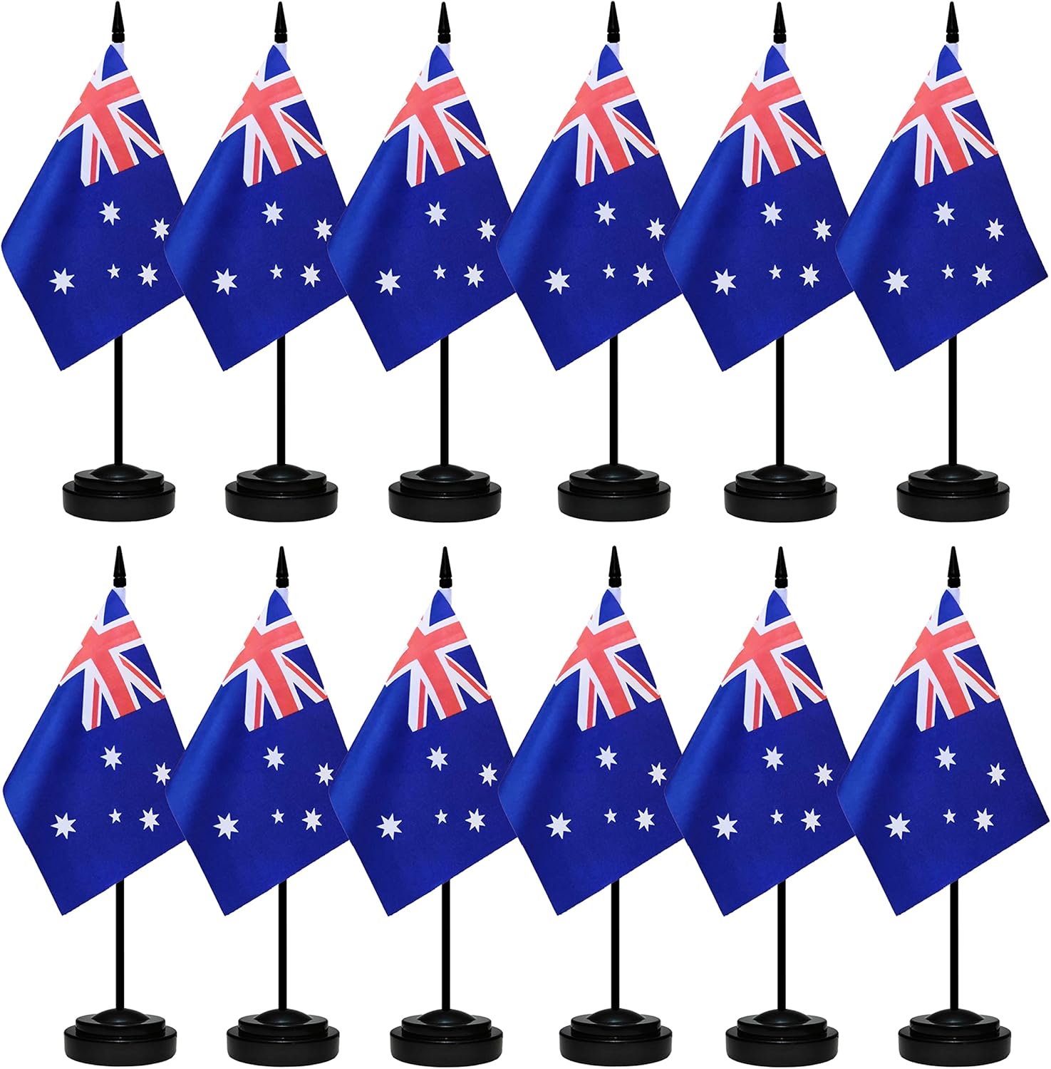 12 Pack Australia Desk Flags Set, Australian Small Mini Table Office Flags with 12" Solid Black Pole, 8.2 x 5.5 Inches, Home and Office Decoration, Festival Celebrations