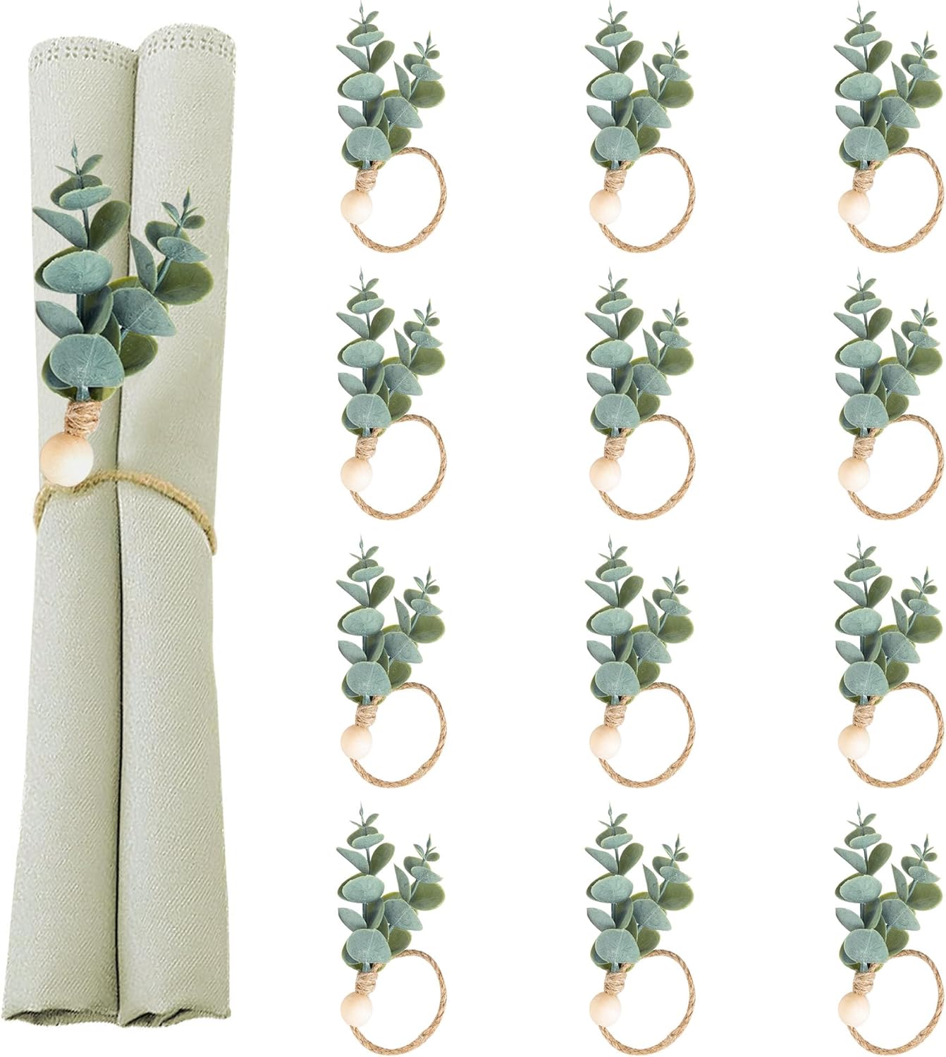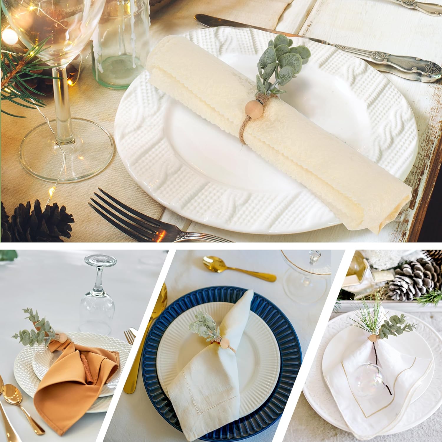 - 【Premium Napkin Rings Set of 12】: The wooden bead napkin rings are made of faux eucalyptus, wooden beads and linen.Crafted with meticulous attention to detail, our napkin rings are made with high-quality materials. The combination of large wooden beads and sturdy hemp rope ensures exceptional durability, while providing a delightful tactile experience.