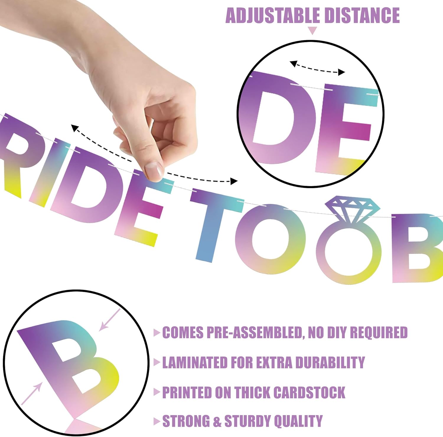 - LARGE SIZE, 10 FEET | RAINBOW BRIDE TO BE BANNER WITH RING : Planning a fabulous and elegant bridal shower before you tie the knots? Decorate your event with this authentic iridescent bride to be banner. This vibrant 10 Feet Rainbow Banner is perfect for fun sweet bride to be party decorations before the most awaited day of wedding. This iridescent bachelorette party will complete your bachelorette party decorations supplies kit. and many more party occasions.