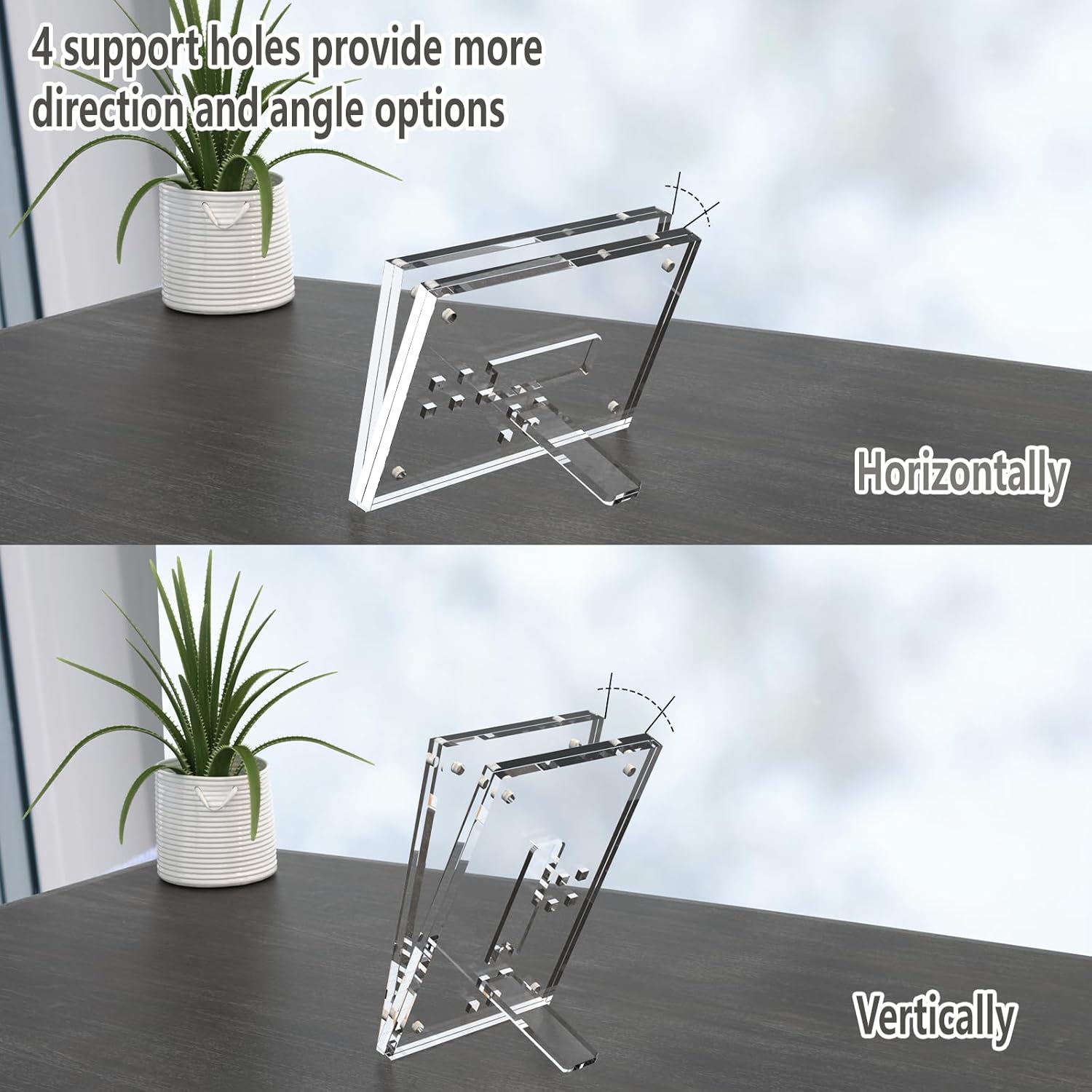 - Provide additional display options and angles: The frame stand is built into the recess on the back of the picture frame. The innovative dual-leg design ensures a more secure fit with four mounting holes. These mounting holes not only allow you to choose between horizontal and vertical orientations but also help you find a more comfortable viewing angle.