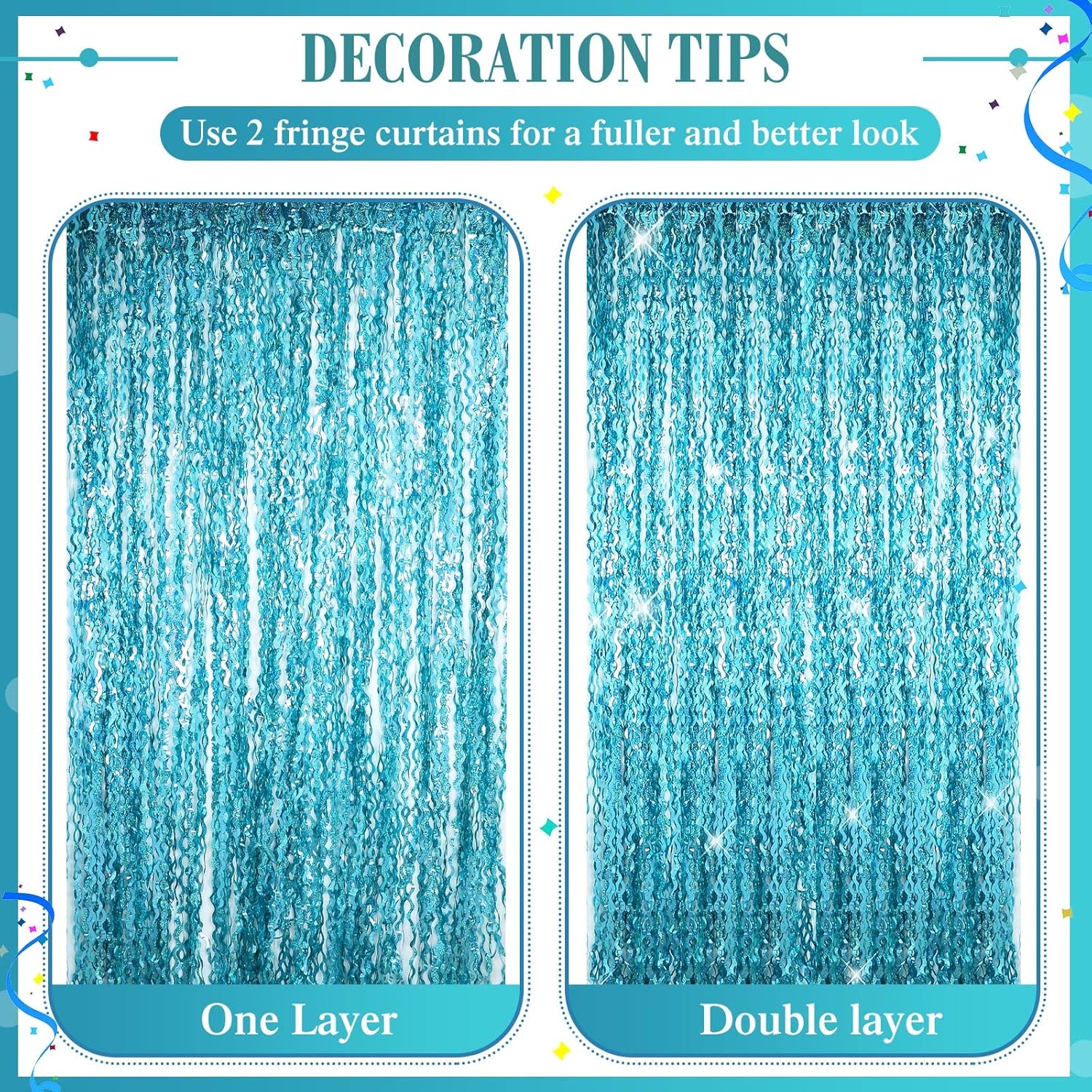 10 Pieces 3.3 x 6.6 Ft Foil Fringe Backdrop Party Wavy Tinsel Fringe Curtain Streamer for Happy New Year Carnival Party Favor 80s 90s Disco Ocean Sea Mermaid Birthday Wedding(Blue Green)