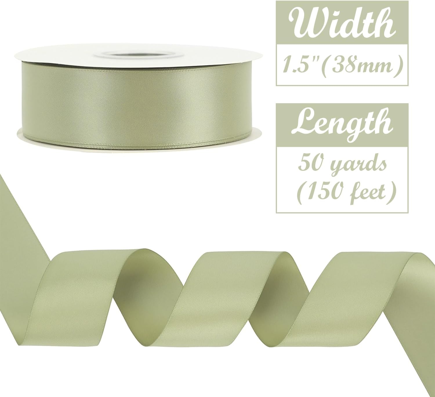 HUIHUANG Dusty Sage Ribbon 1-1/2 inch Double-Faced Satin Ribbon Sage Green Ribbon for Gift Wrapping, Flower Bouquet Wrap, Invitations, Holiday Decor, Bows Making, Crafts-50 Yards