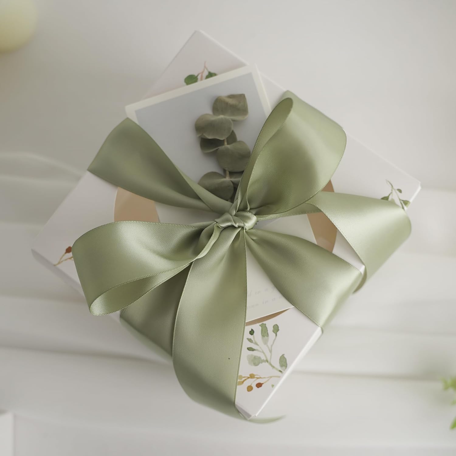 - Material: Dusty sage green ribbon is made of polyester satin material, double face silky texture, glossy and shiny luxury surface, without wrinkles. The ribbon is soft and flexible to meet your creative craft ideas and decorations, also obtains high level of color fastness, washable and would not fade