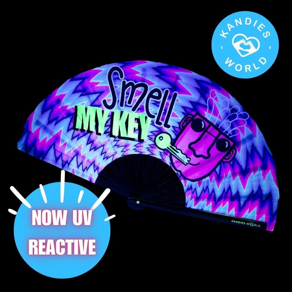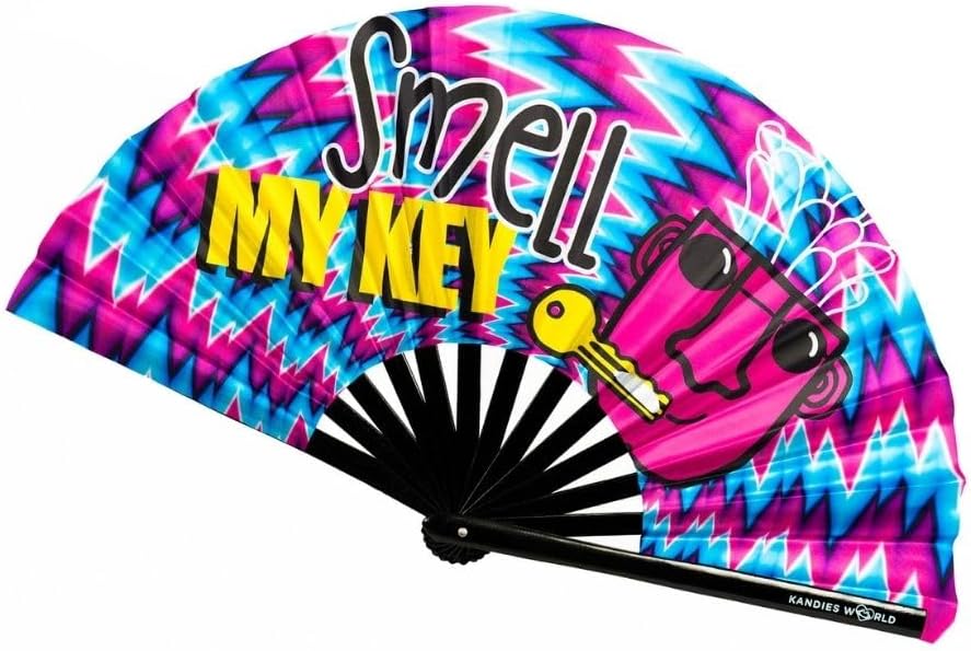 Kandies World Custom Festival Folding Hand Fan - Unique Designs, Made of Bamboo, Clacking Sound, Lightweight - Perfect Rave and Festival Accessory!