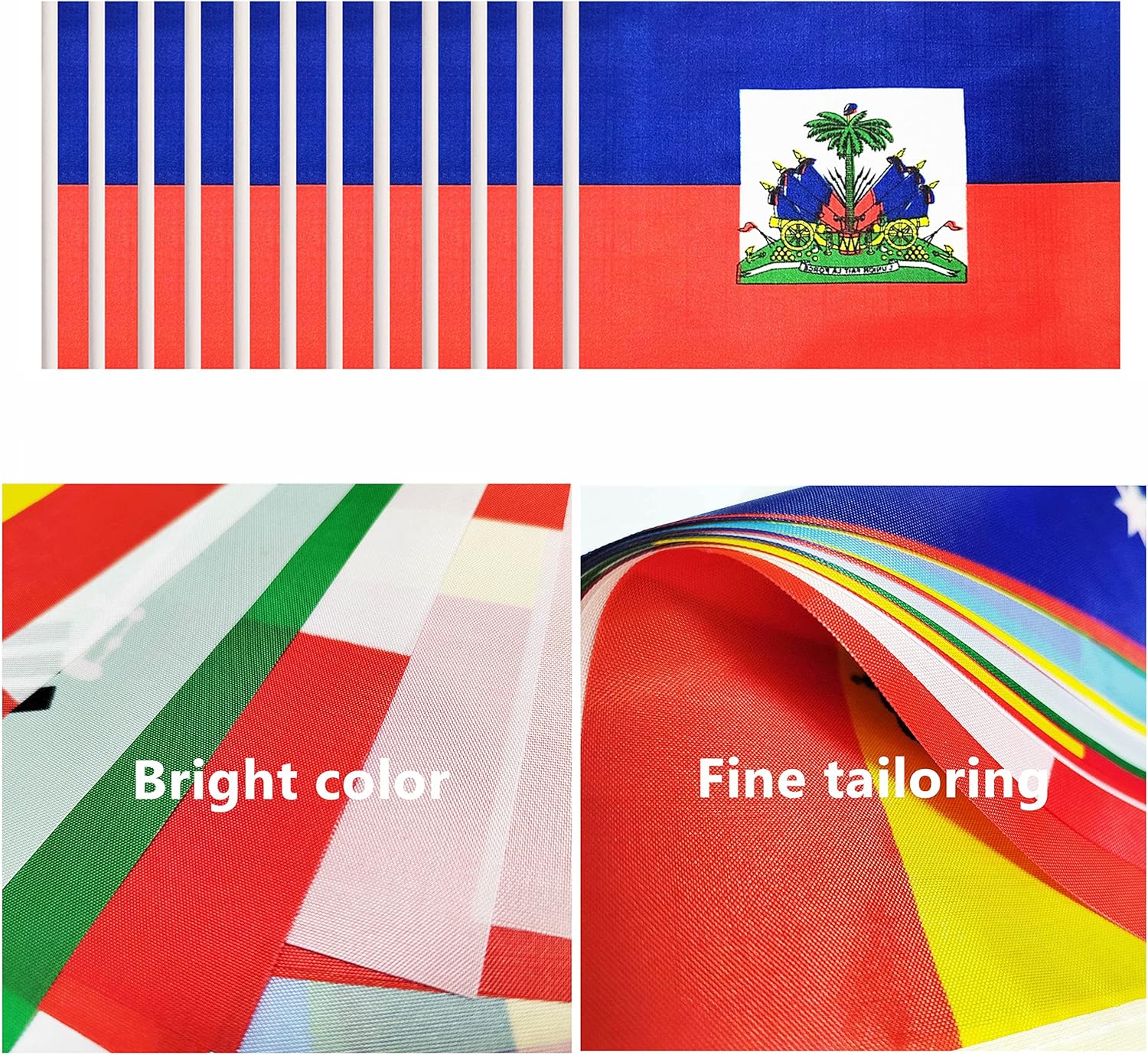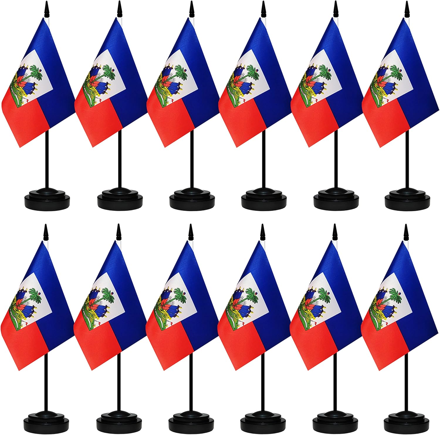 12 Pack Haiti Desk Flags Set, Haitian Small Mini Table Office Flags With 12" Solid Black Pole, Black Base and Spear Top, Miniature Desktop Flag, Home Decoration, Office Decoration, Festival