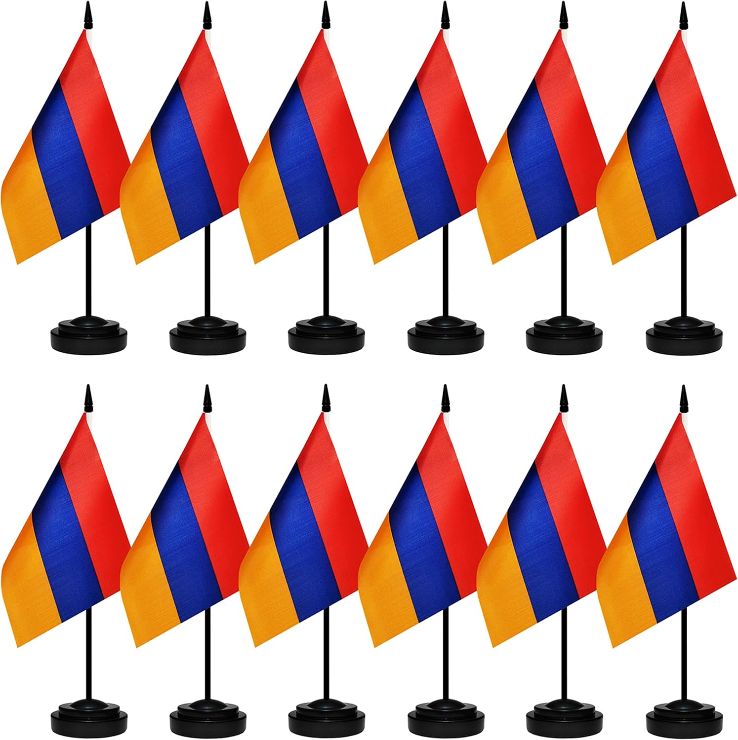 12 Pack Armenia Desk Flags Set, Armenian Small Mini Table Office Flags With 12" Solid Black Pole, Black Base and Spear Top, Miniature Desktop Flag, Home Decoration, Office Decoration, Festival