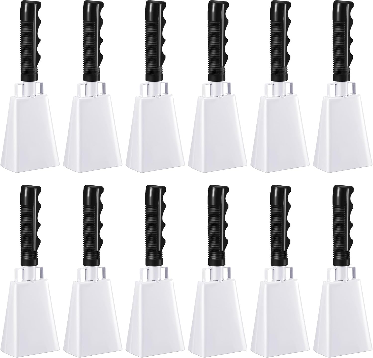 Pelopy 12 Pcs Large Cow Bell 9 '' Cowbell with Handle Cowbells for Sporting Events Hand Percussion Cheering Bell Chimes for Football Game, Alarm Loud Noise Makers, Musical Instrument(White)