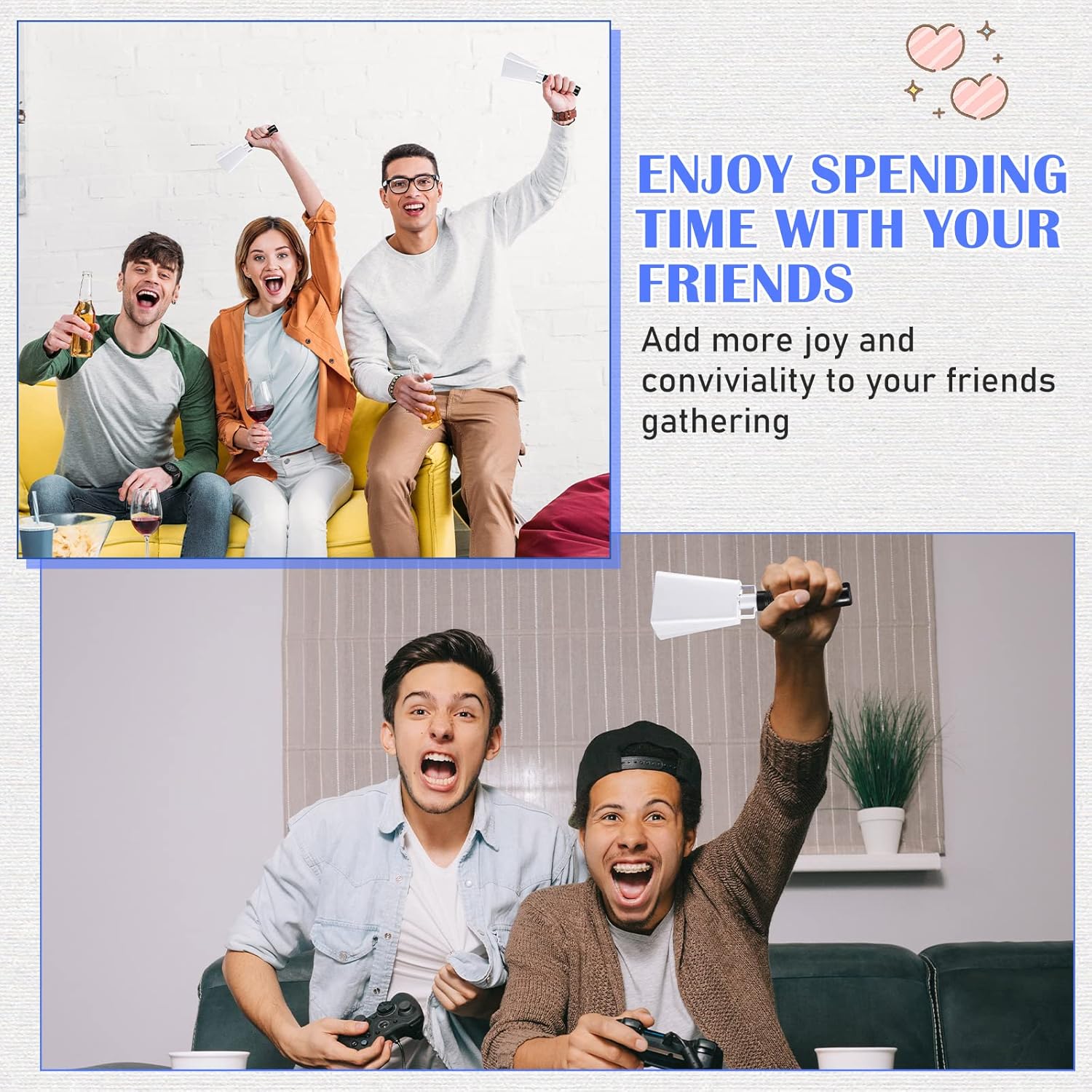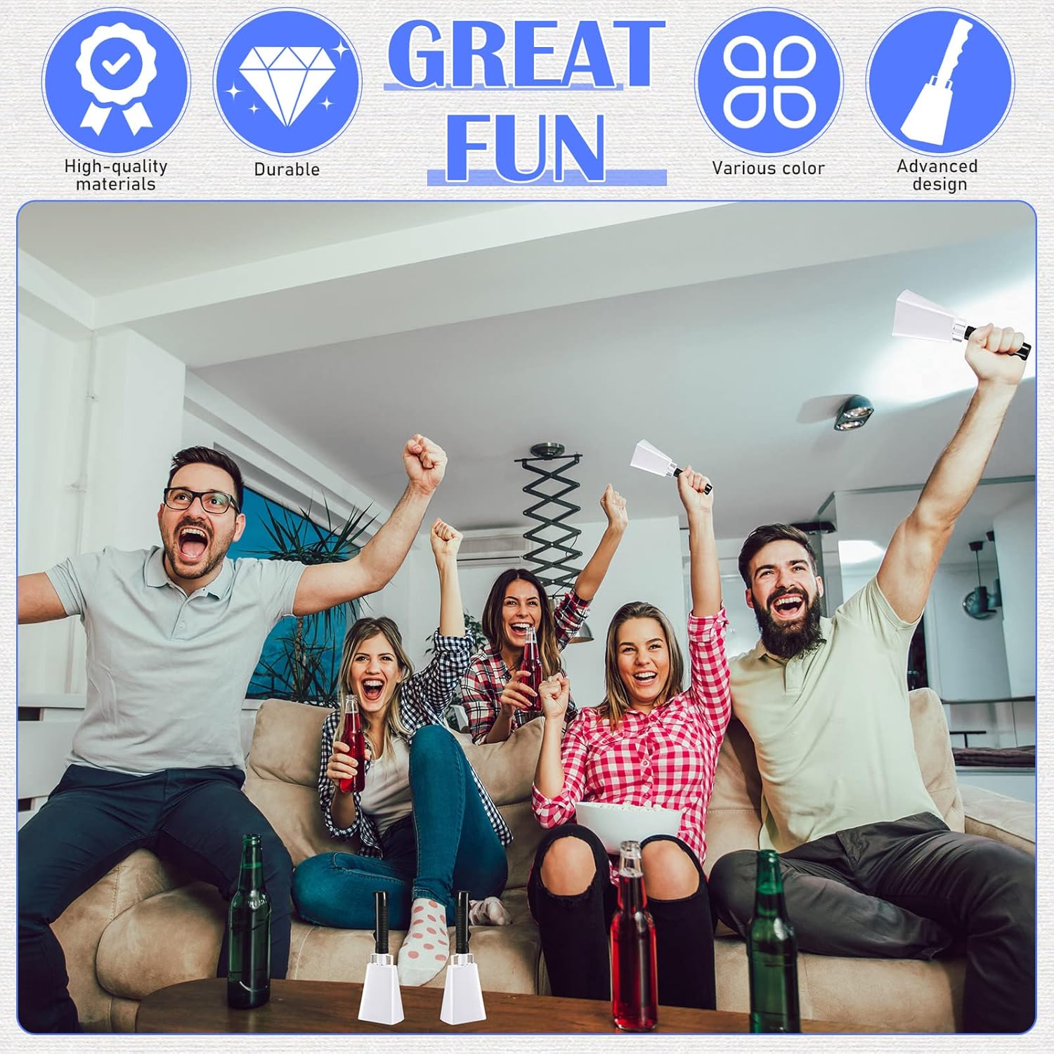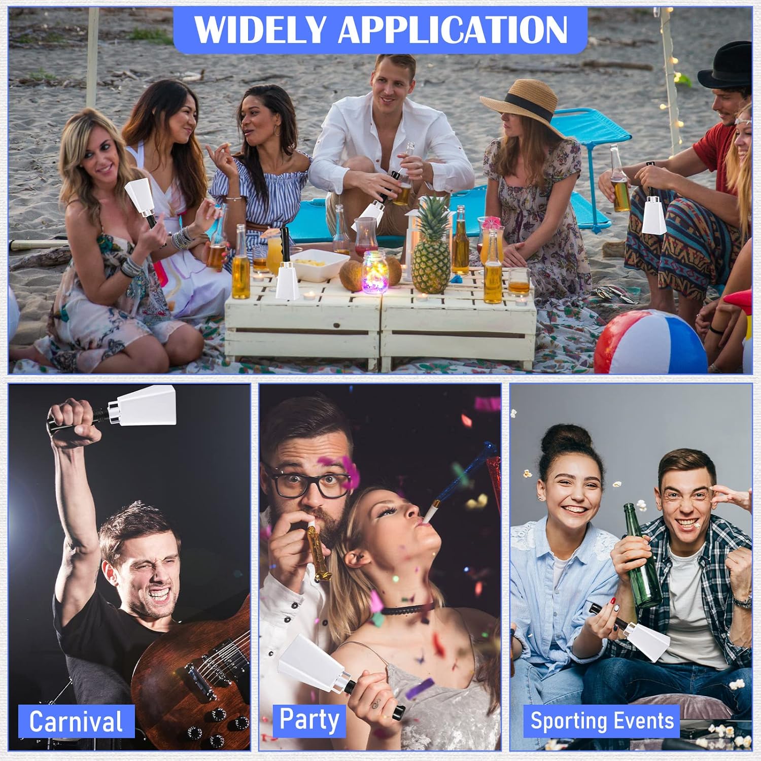 - Widely Application: these cow bells noise makers can be applied to many occasions, whether you need them for music performances, farm animals, or even for weddings, this cow bell is sure to come in handy; And also these cow bells can be seen as a football noise maker, graduation noise maker, or school hand bell to show team spirit