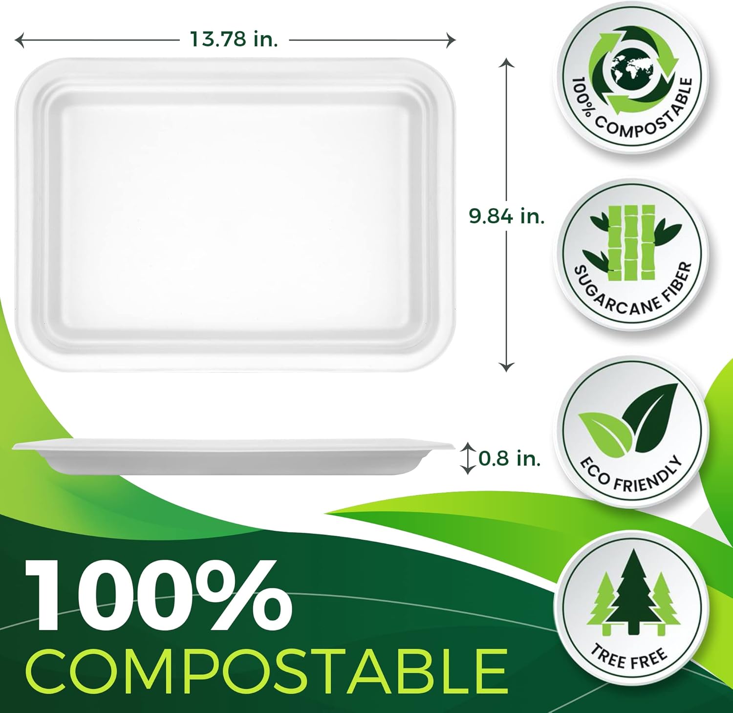 - 🌿【A Great Alternative to Plastic and Paper】- Our 14 inch bulk compostable tray are made from bagasse, a by-product of sugarcane processing. They are compostable and designed to make life easier while reducing our carbon footprint.
