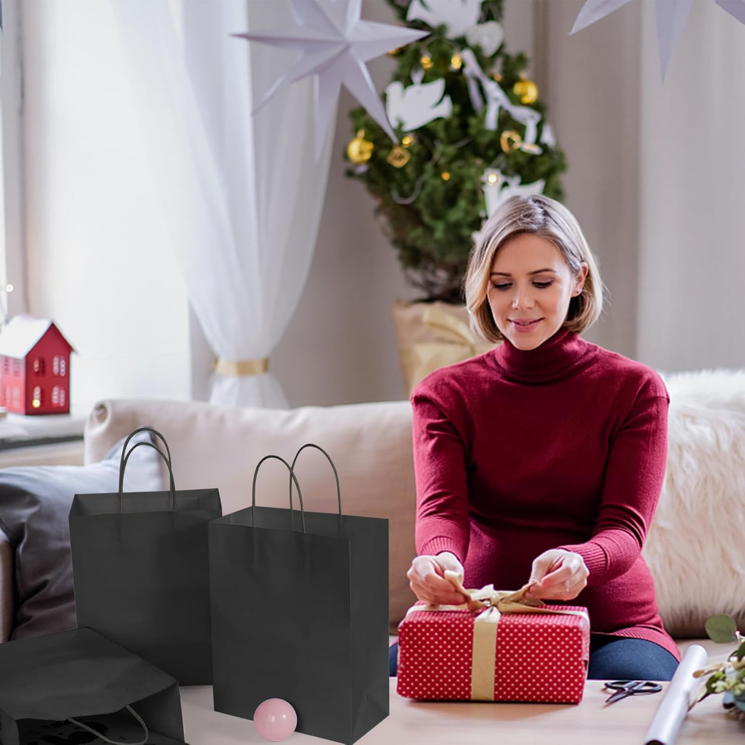 - Black Gift Bags: These black paper bags with handles come in packs of 40,Size:8.3*5.9*3.2 inches