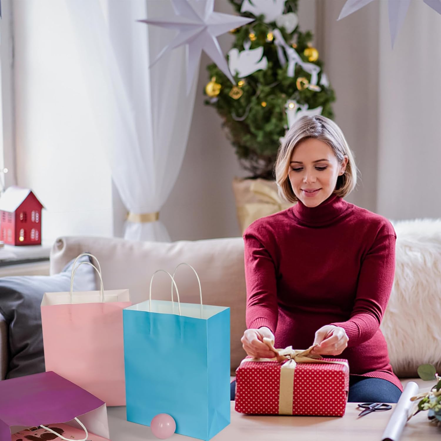 - High Quality Paper Bags:These paper gift bags use white kraft paper, recyclable and reusable, with handles taped on the inside, they can withstand heavier items without breaking, very solid and durable.