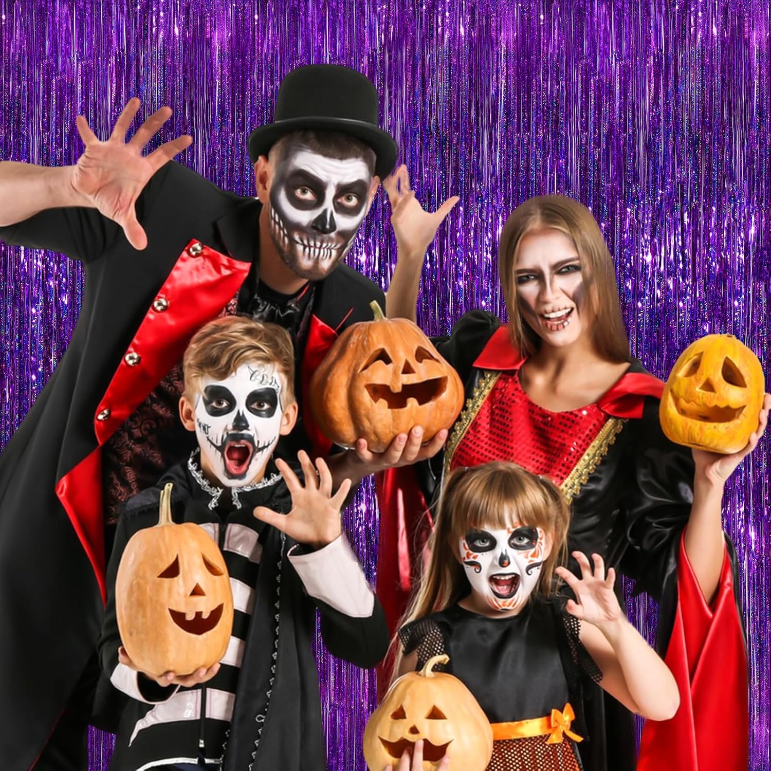 2 Pack Purple Metallic Tinsel Foil Fringe Curtains, Purple Streamers 3.3 x 8.3ft Party Streamers for Birthday Party Decorations, Foil Curtain Backdrop for Wedding Bachelorette Party, Halloween Decor