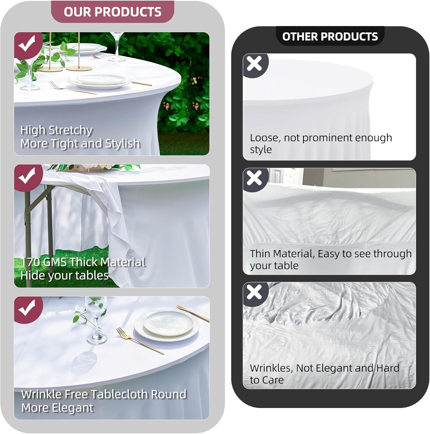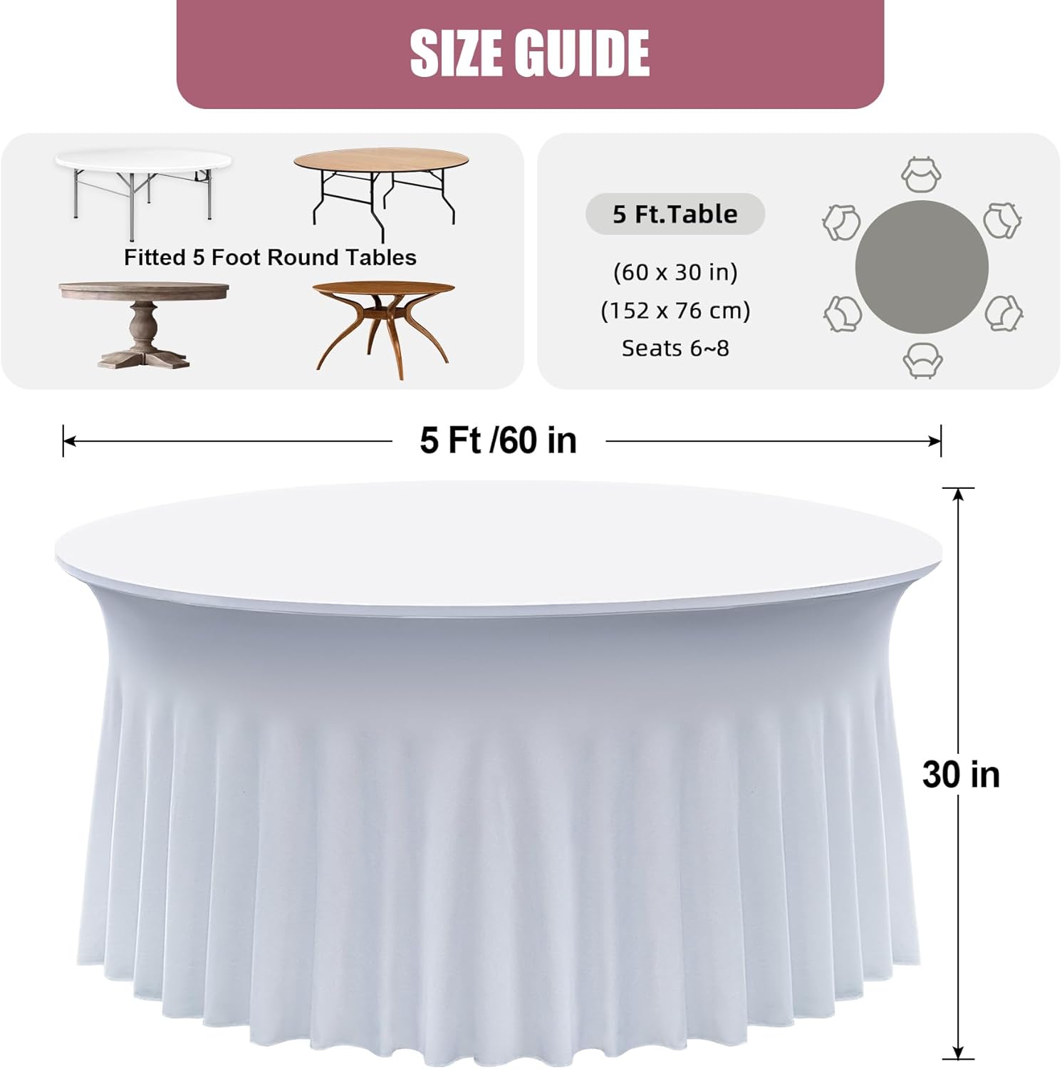 - 【Package and Size】 - Your Package will come with 4 pack white round spandex tablecloth,the size of each tablecloth is 60 inches in diameter and 30inch in height,to the flooor, tighy fit 5ft round party tables.