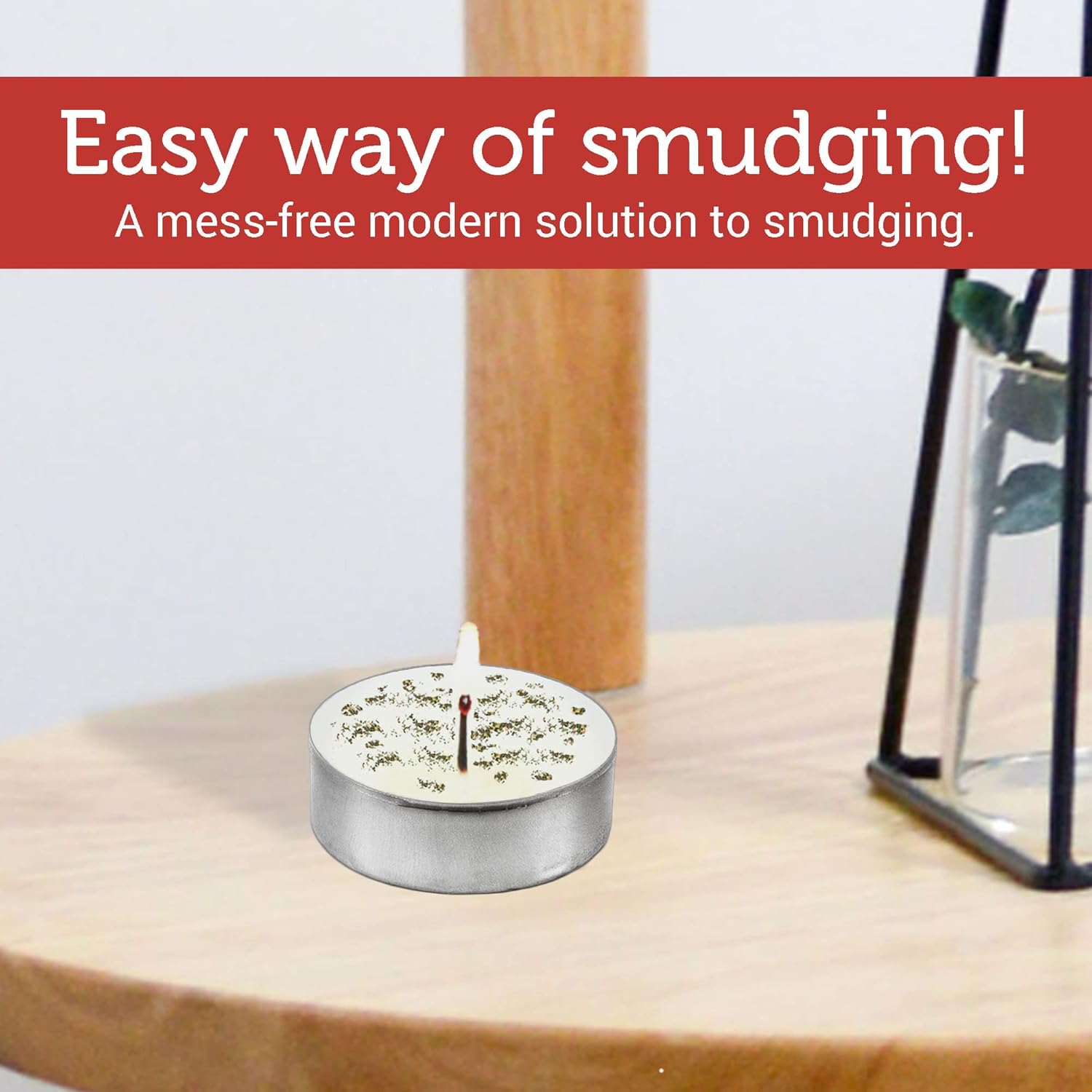 SOUL STICKS 12 Pack Little Smudgies Tealight Candles Smudge Candle for Cleansing House, Meditation, Chakra Healing | Made with Crystals and Herbs (White Sage & Dragon's Blood)