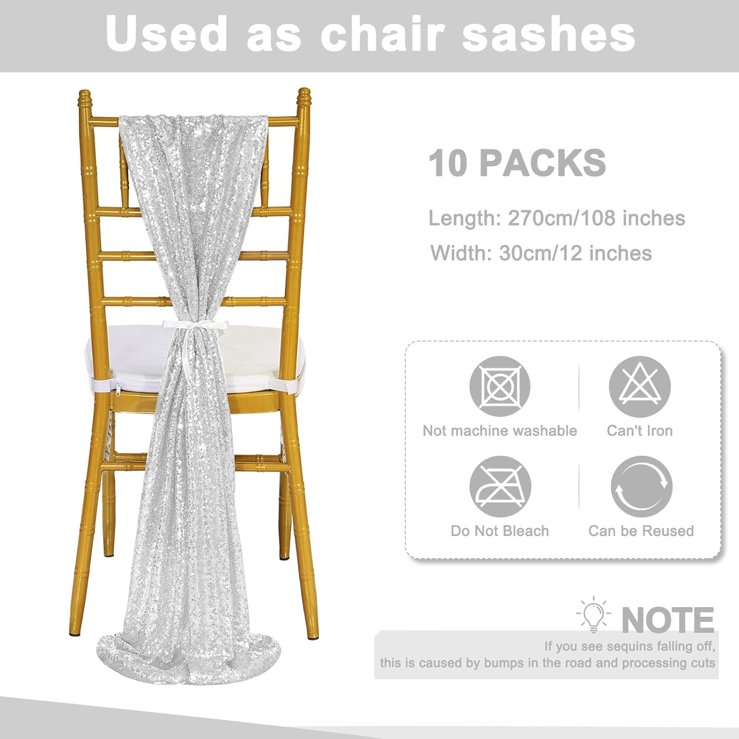 - Table Runners for Party: The high quantity of 10 pack meets all grand party banquet needs. A versatile table runners can be used for weddings, birthday parties, banquet, home dรฉcor or any type of event or occasion. This practical sequin table runner can be tied in a bow and used as chair cover sashes or ornaments.