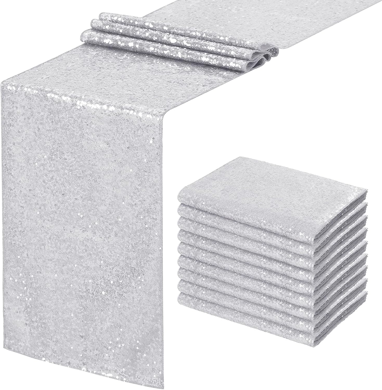 Silver Sequin Table Runners 10 Packs 12x108 Inches Holiday Celebration Sparkly Table Runners for Birthday Party Supplies Decorations