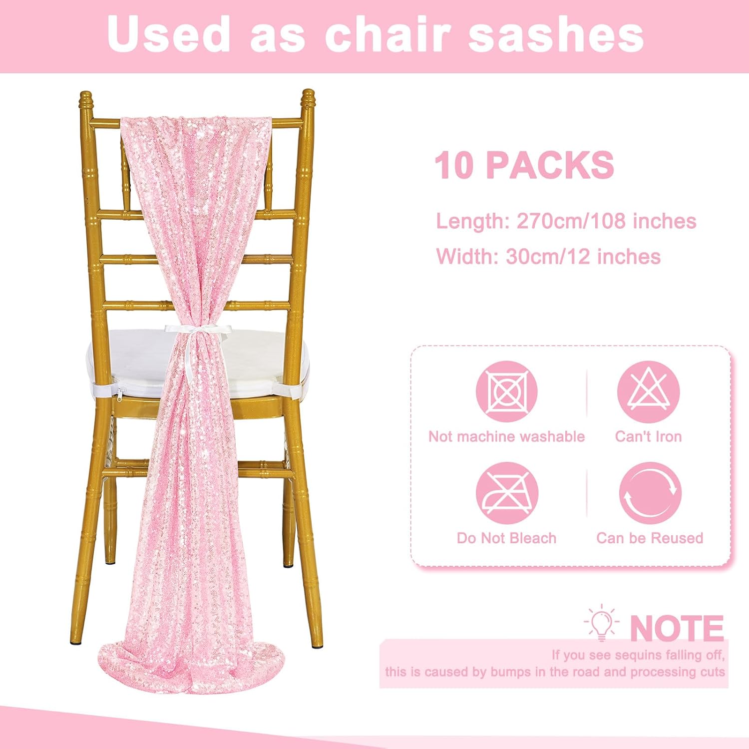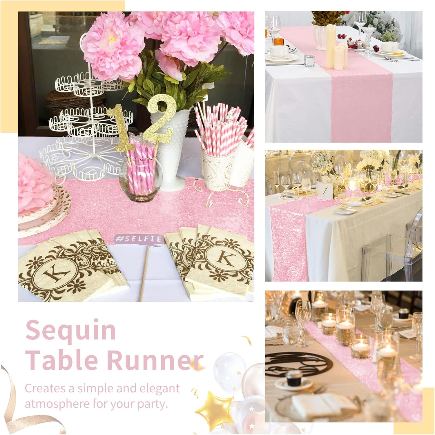 - Pink Sequin Table Runners: Package includes 10 pack of pink table runners for your daily use. Measured about 12x108 inches(30x274cm). Great ideal for wedding table decorations, the sequin table runners is long enough to fit rectangle and round tables that can seat 6 to 10 people.