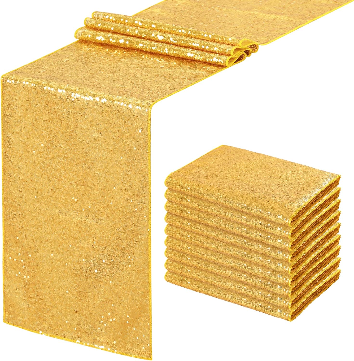 Gold Table Runners 10 Packs 12x108 Inches Sequin Dining Glitter Table Runner for Wedding Baby Shower Party Birthday Supplies Decorations
