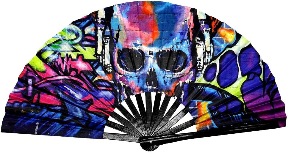 - Wide Application :This is a large hand fan, and it’s literally the perfect rave fan!! The design and colors pop and it’s sturdy . Can be used for wedding, dancing, EDM show performance, carnival, disoc ,cosplay. perfect gift for Birthday, New Year's Day, Valentine's Day, Mother's Day, Father's Day, Halloween, Thanksgiving Day, Christmas.