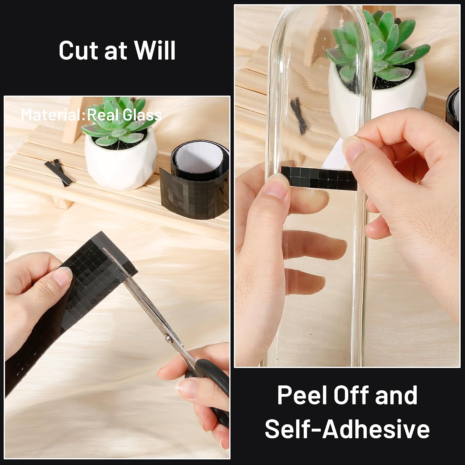 - Black Color Design: These adhesive mirror tiles are very flexible, easy to cut and attach to objects. Black mirror design looks very cool and mysterious, the special color design lets your crafts more fashionable