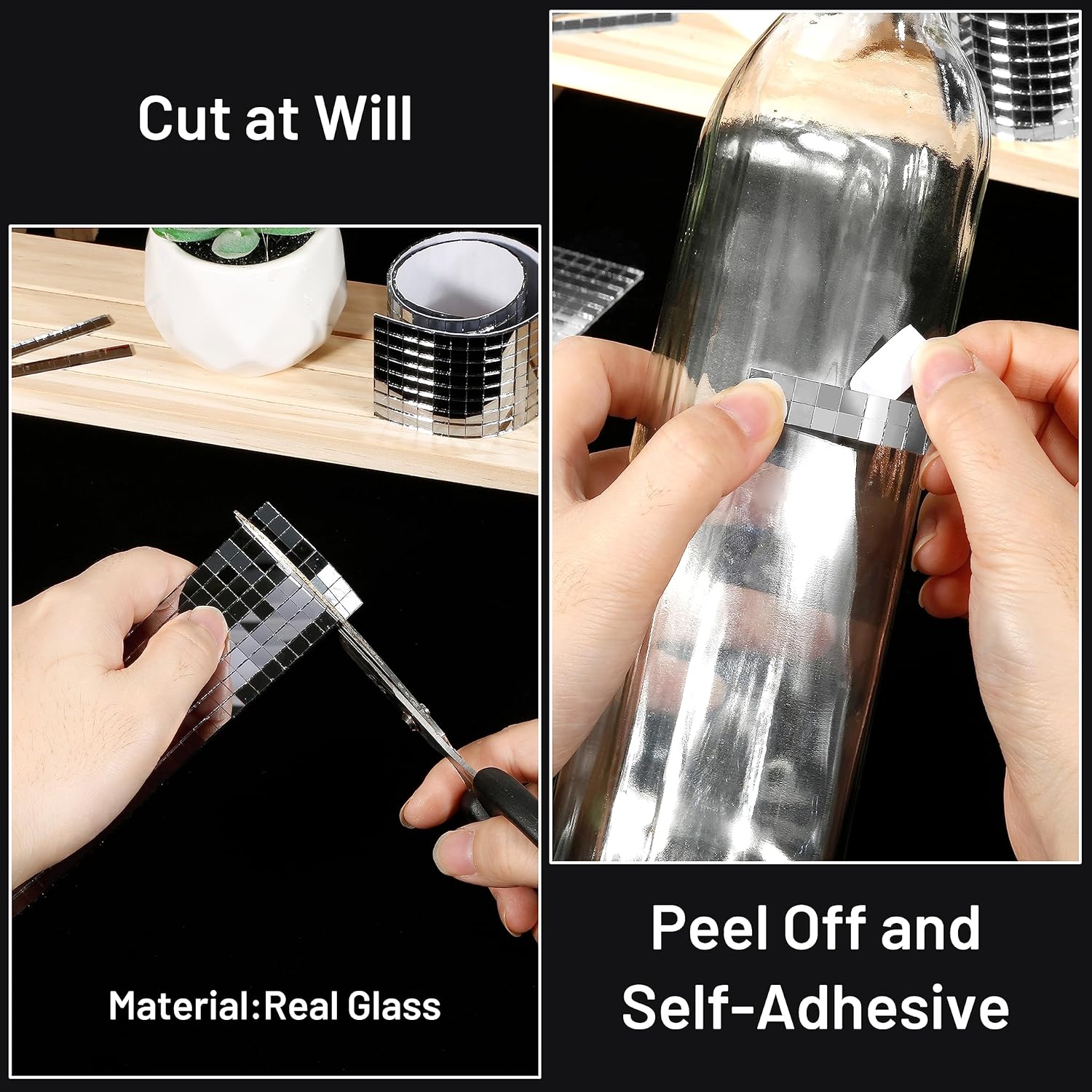 - Self-Adhesive Backing: Each piece of mirror tile is designed with a self-adhesive backing, very sticky, not easy to fall off. No need for additional glue, just tear off the paper on the back and stick them on the item you want to decorate, you'll get beautiful crafts