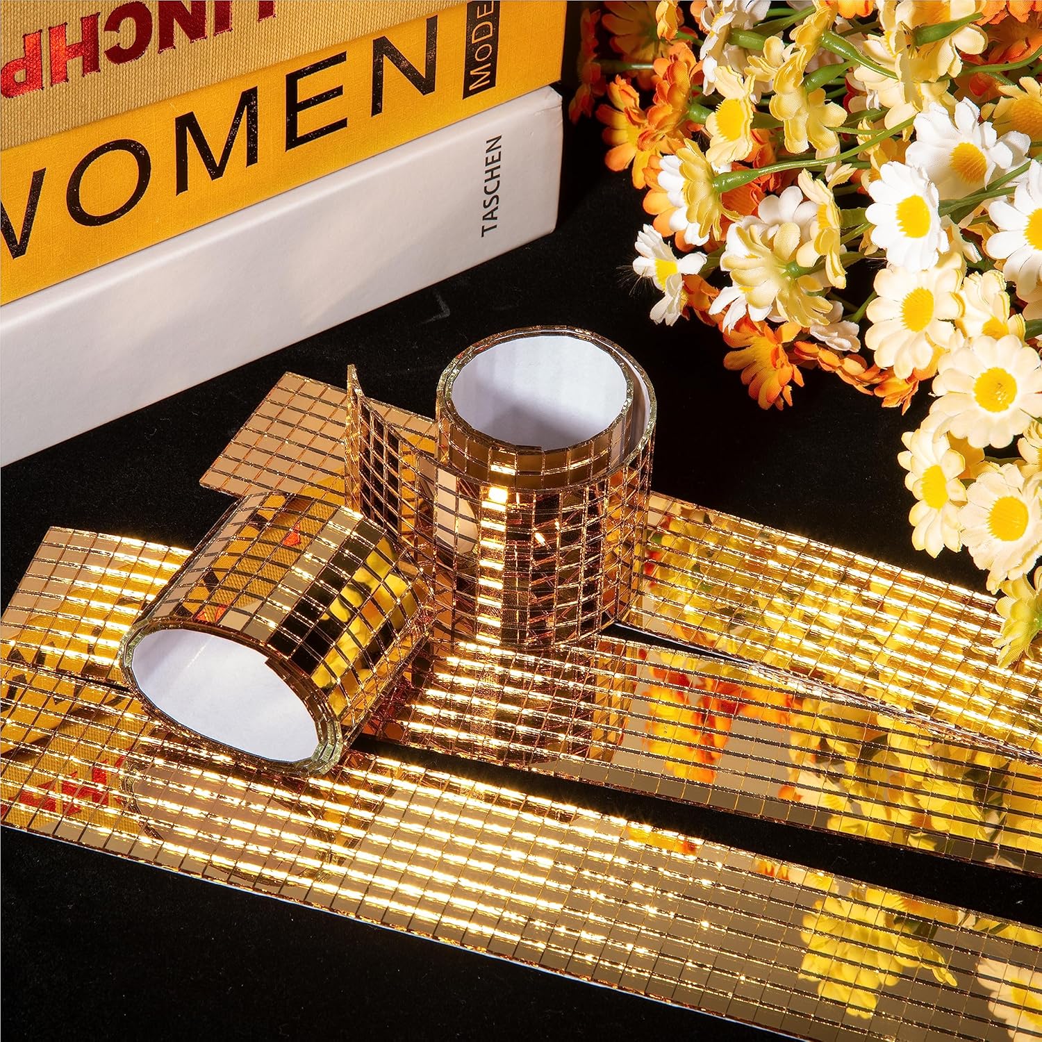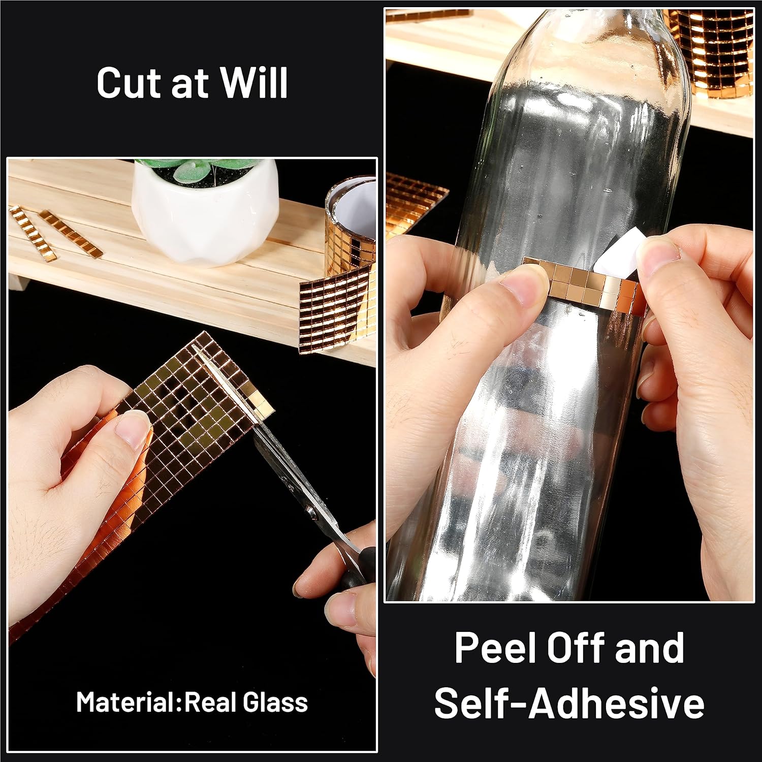 - Luxury Gold Color Design: These self adhesive tiles are very flexible, easy to cut and attach to objects. Luxury gold mirror design looks very soft and pure, the warm and comfortable color lets your crafts more fashionable