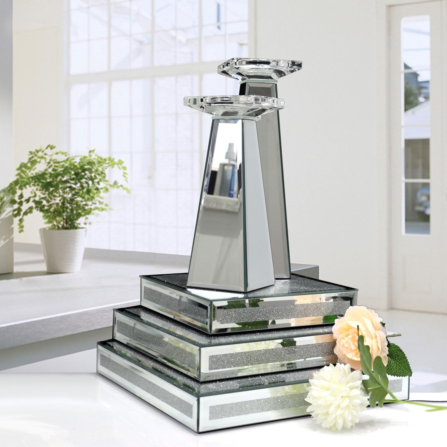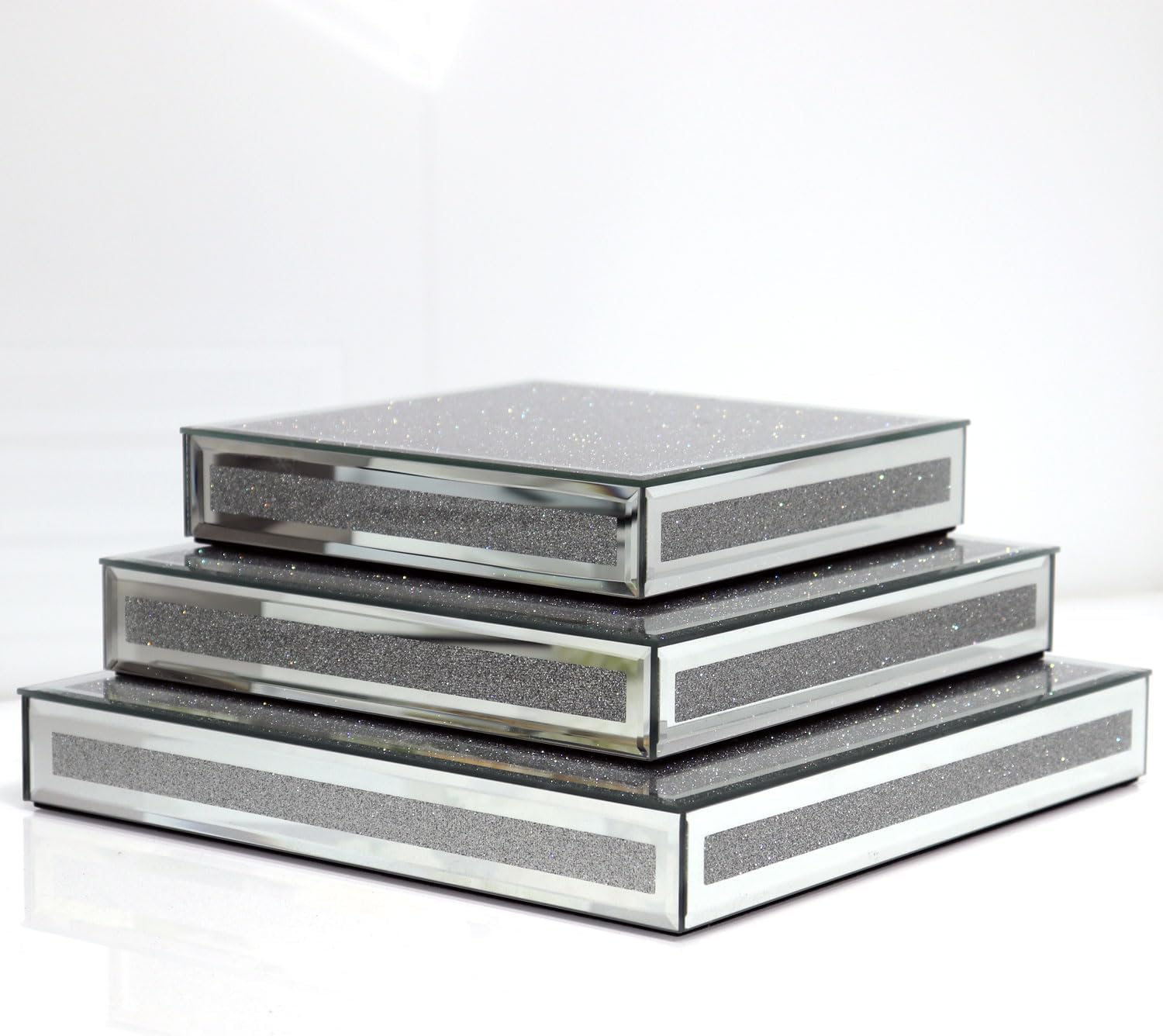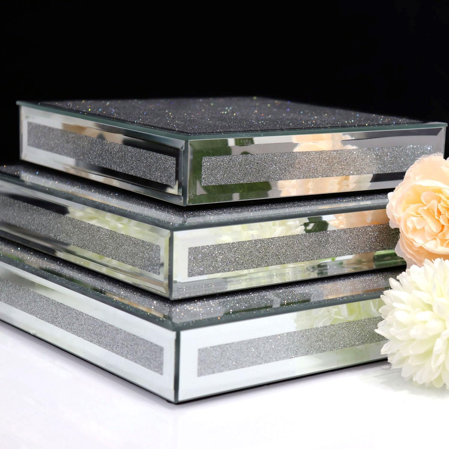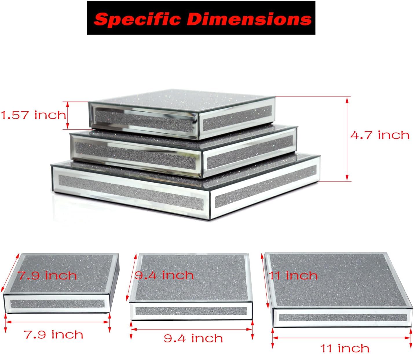 GIMORRTO Mirror Display Riser 3 PC, Glam Accent Table Display Platform for Decorative Pieces, Mirrored Showpeice 3 set, Food Beffer Displayer (Sparkling 3PC)