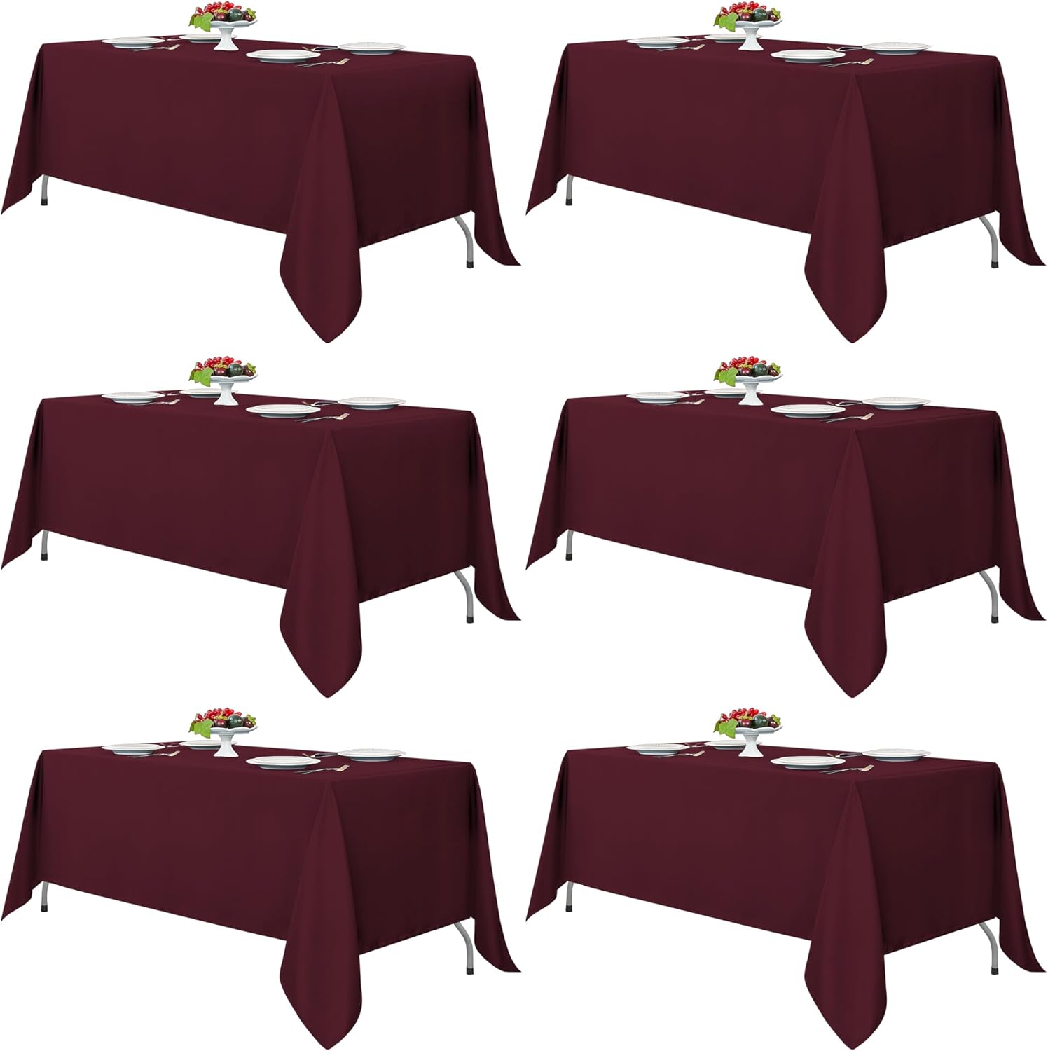 Fitable Burgundy Rectangle Tablecloths for 6 Foot Tables, 6 Pack - 70 x 108 Inches - Stain Resistant and Washable Table Clothes, Polyester Fabric Table Covers for Wedding, Party, Banquet, Buffect