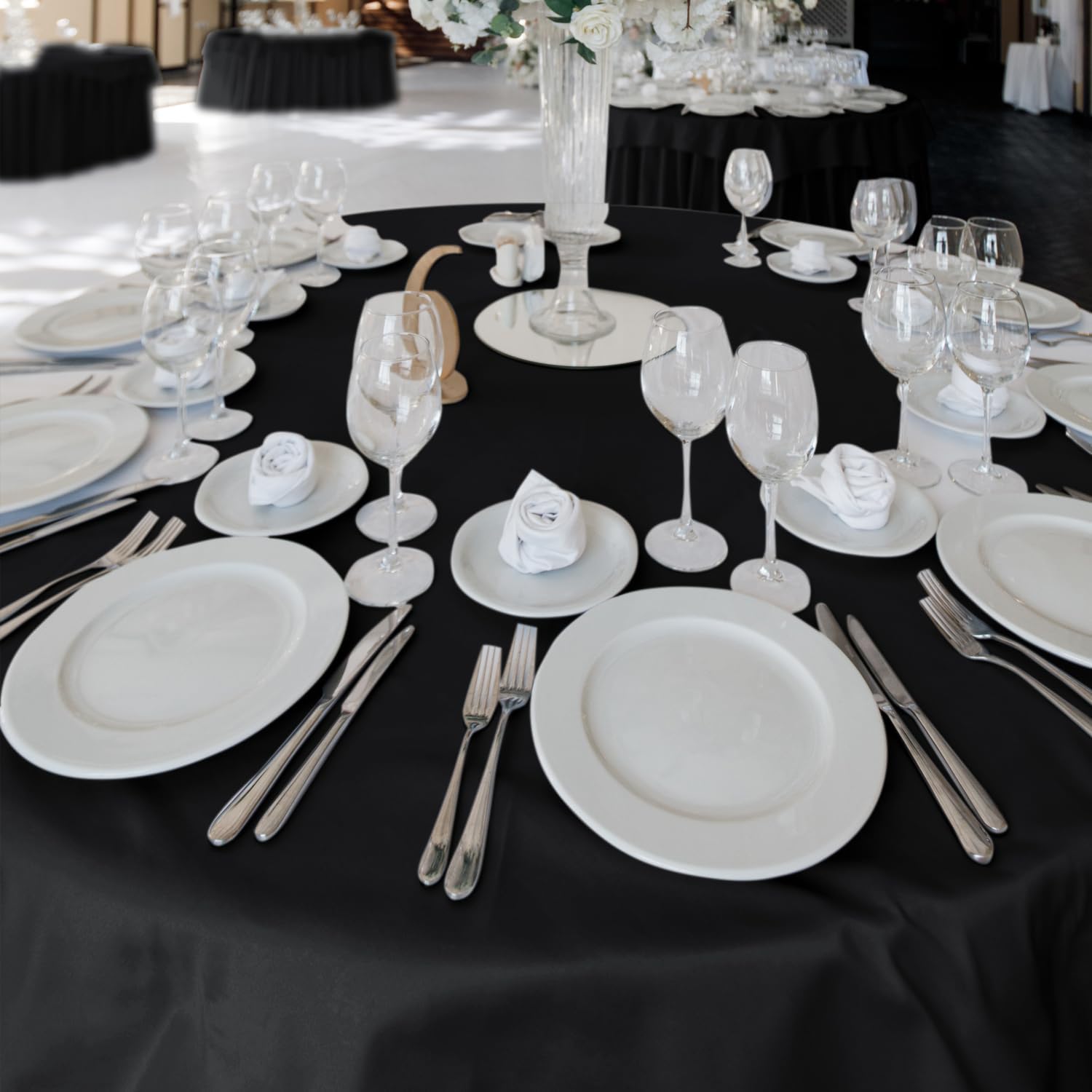 Fitable 6 Pack Black Round Table Clothes - 90 Inches in Diameter - Stain Resistant and Washable Tablecloths, Polyester Fabric Table Covers for Wedding, Party, Banquet, Gathering