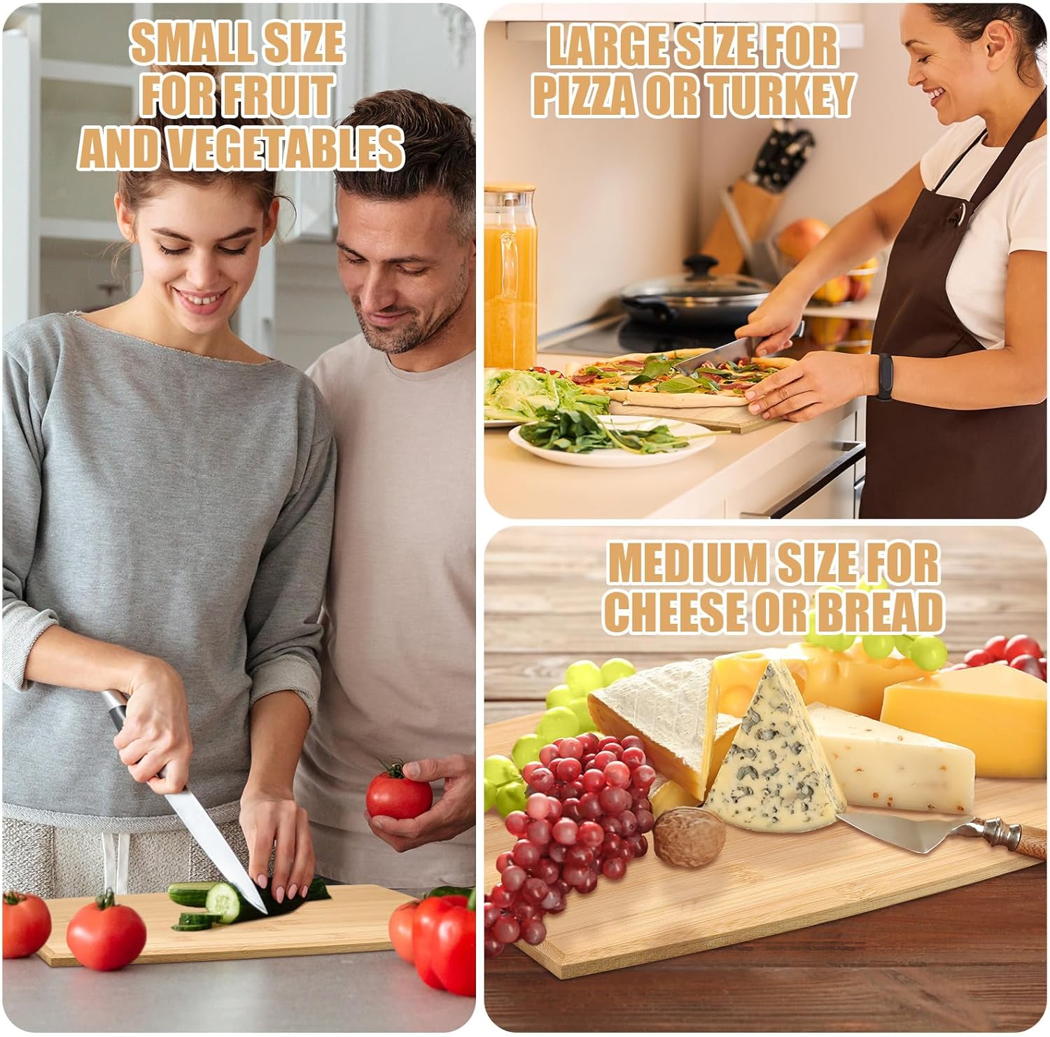 - Wide Application: enjoying nice durability, with a smooth and durable texture, these wooden cutting boards for kitchen are ideal for efficiently and cleanly cut your meat, fruits and vegetables without any trouble, and also can be served for cheese, bread, steaks or charcuterie; They are also ideal gifts for Mother's Day and housewarming parties, a versatile product for your daily using, crating a greener life to you and your family