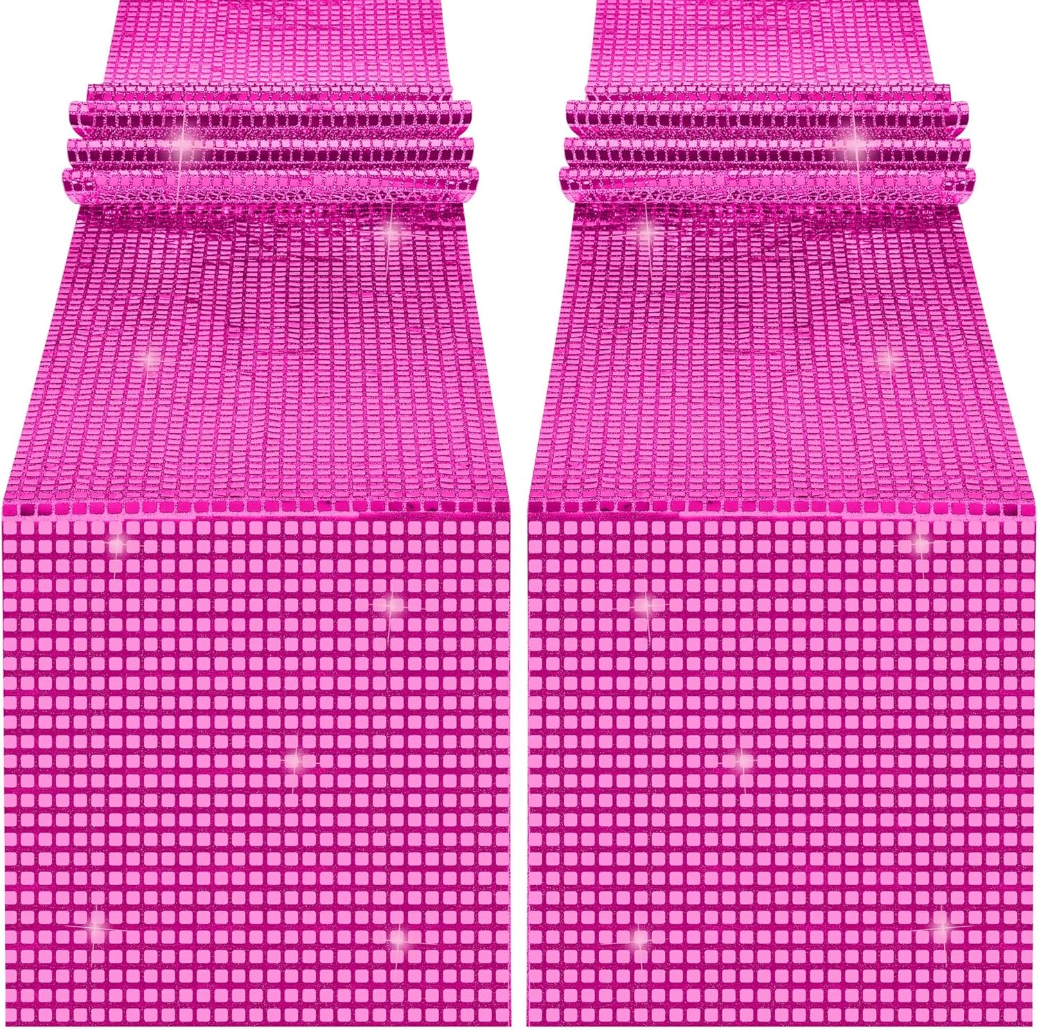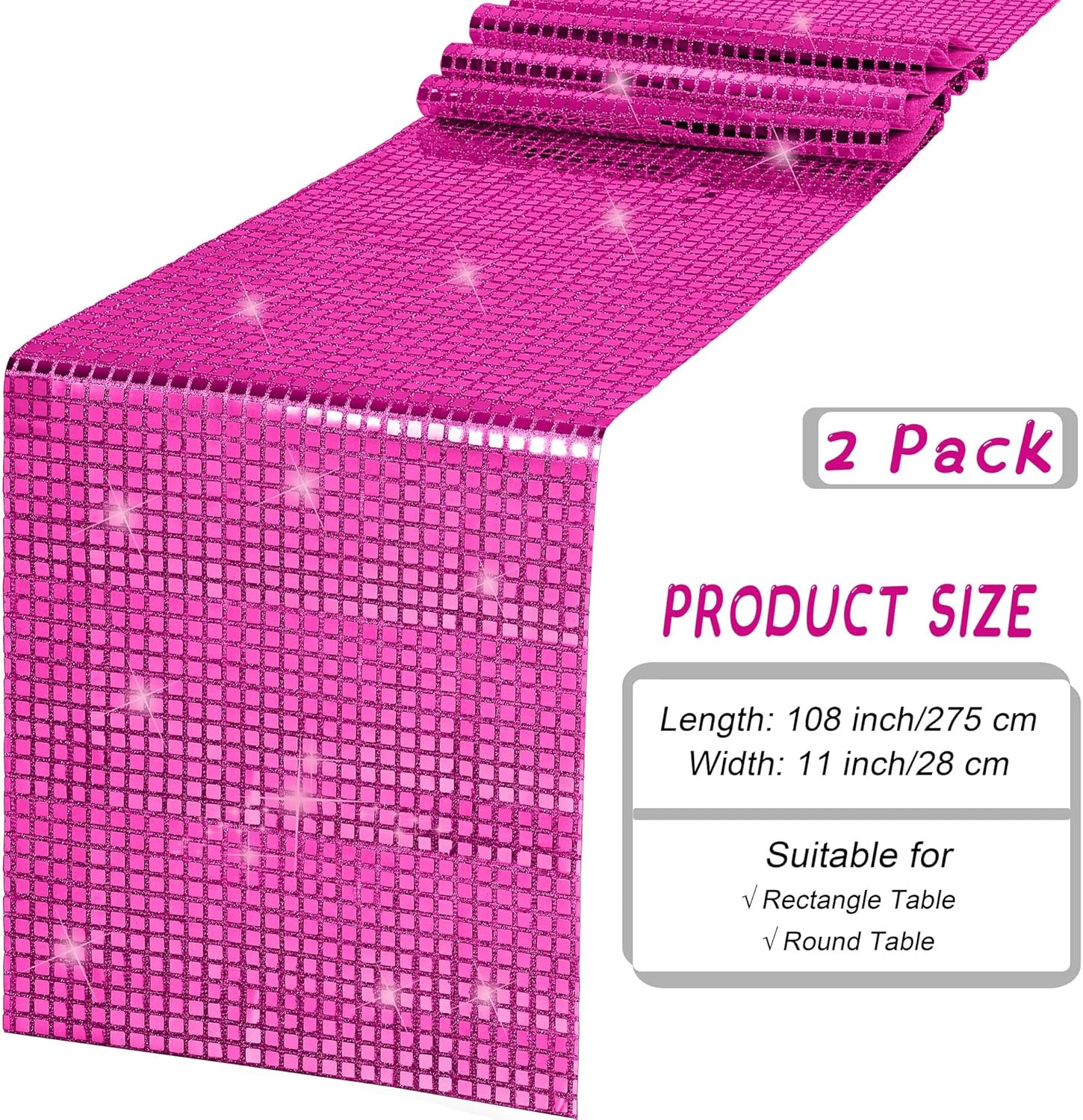 Durony 2 Pack Disco Table Runner 11 x 108 Inch Mirror Hot Pink Glitter Foil With Sparkle Sequin for Bachelorette, 70s, Cowgirl Party Decorations