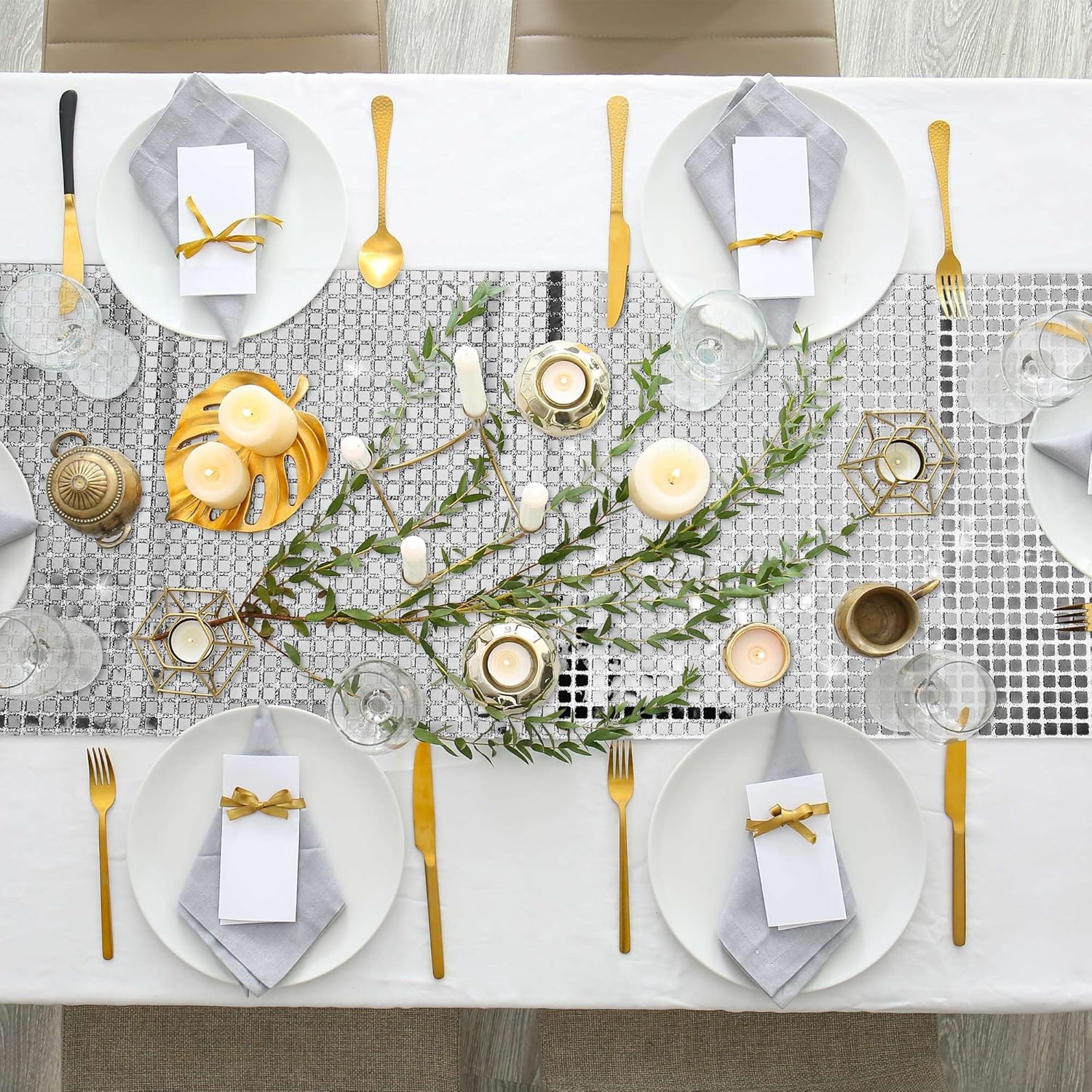 - Material: Our table runners are made of high quality sequins and polyester that not only looks great but is also reliable and won't fade easily. The mirror-like squares are carefully crafted onto the table runners, so they're long-lasting and resistant to water, oil, and stain. You can use it with confidence and for a long time to use.