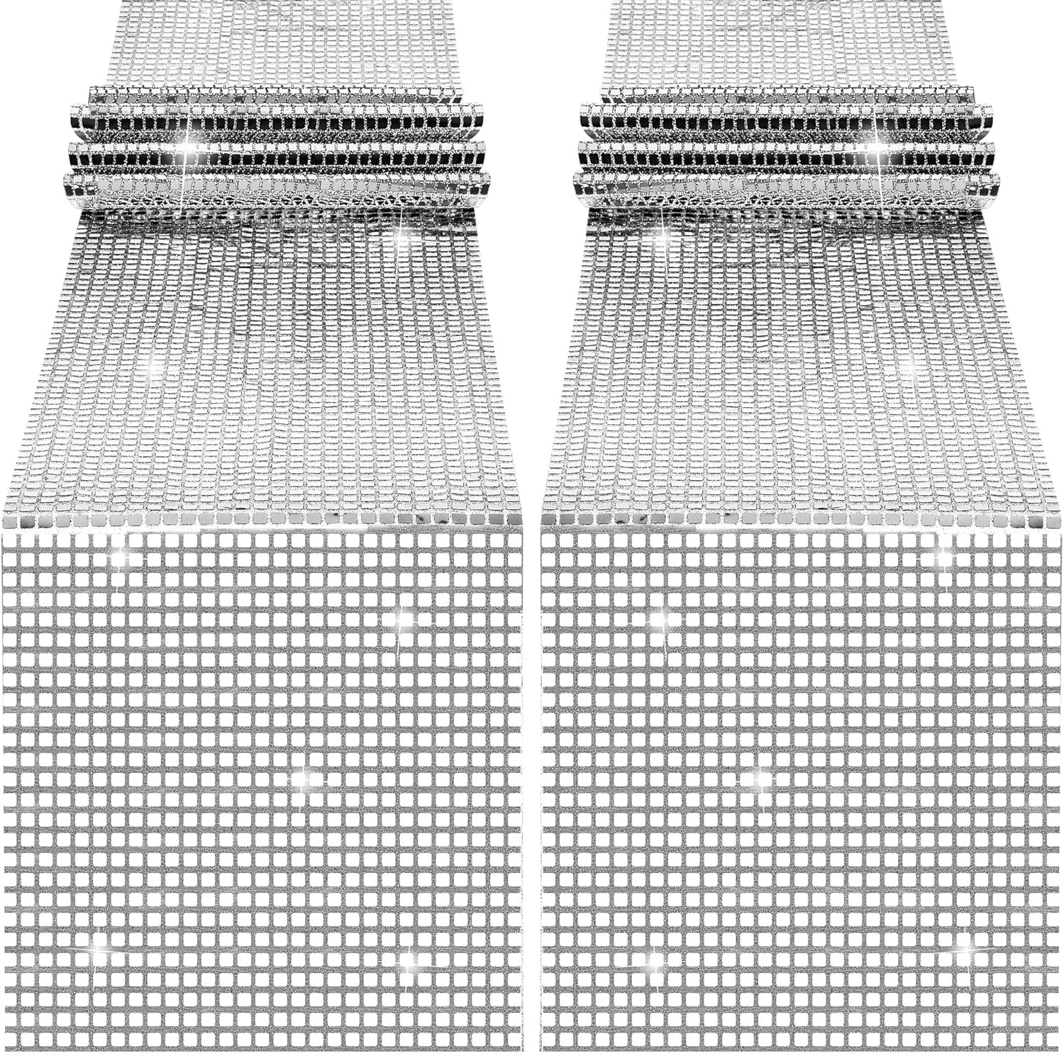 durony 2 Pack Disco Party Table Runner 11 x 108 Inch Mirror Silver Glitter Foil with Sparkle Sequin Table Runner for 70s Bachelorette Parties Disco Cowgirl Party Decorations