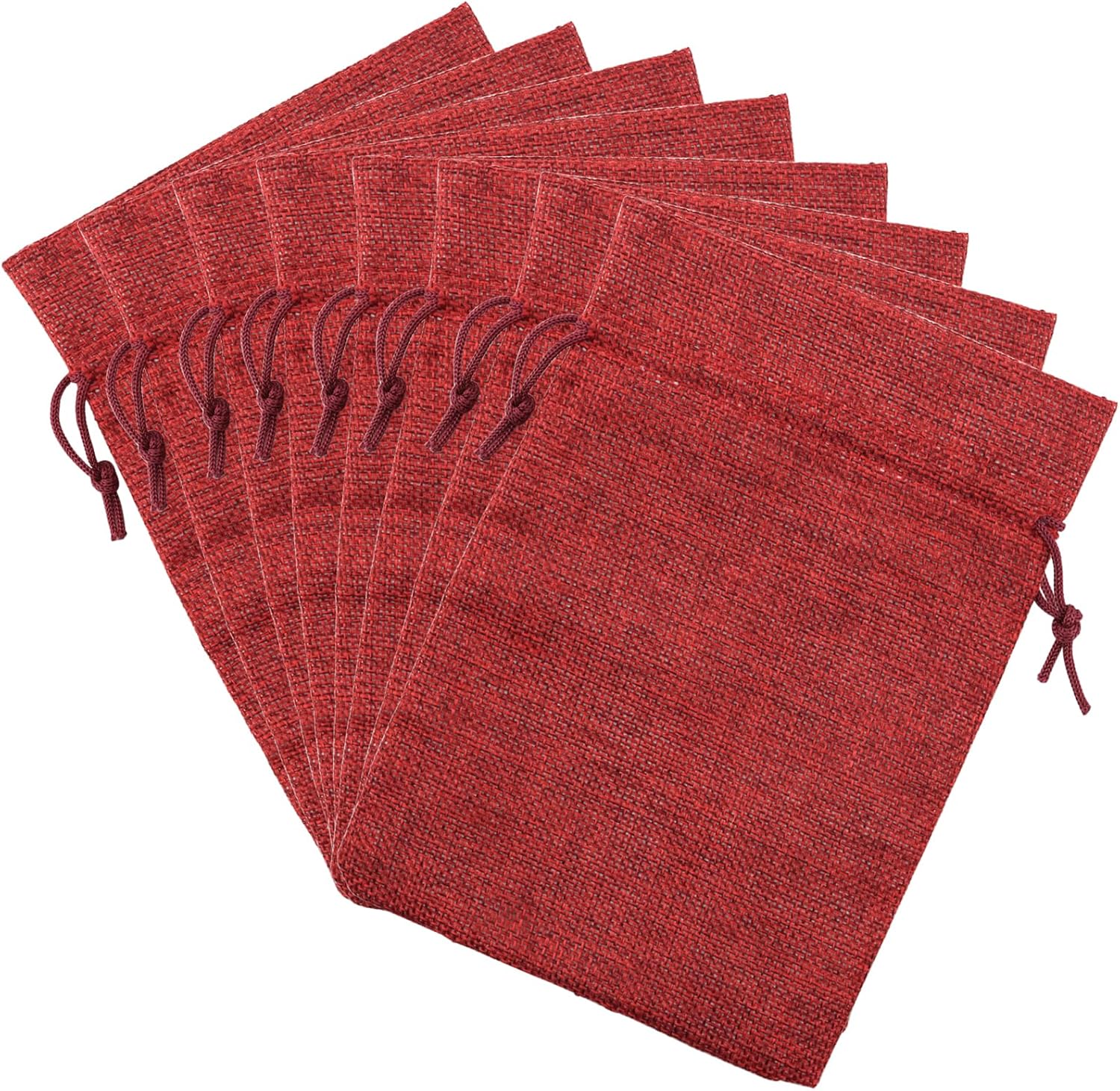 ZOENHOU 50 Packs 5 x 7 Inch Large Burlap Bags with Drawstring, Durable Wine Red Jute Drawstring Bags, Dustproof Burlap Sacks for Favors Party DIY Craft