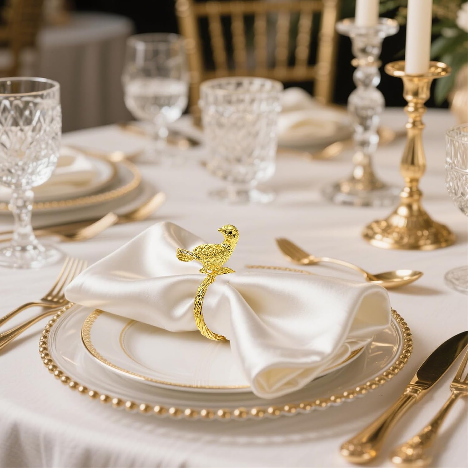 - 🌟 Napkin Rings set of 8 for Dining Table Decor: Total of 8pcs napkin rings are in the package of this gold napkin rings set,Pair standing bird Napkin Rings with flower table accessories to create farmhouse-themed table decoration for daily,the gold napkin ring holders is suitable as metal napkin holders for cloth napkins or rustic napkin rings for home dining table decor