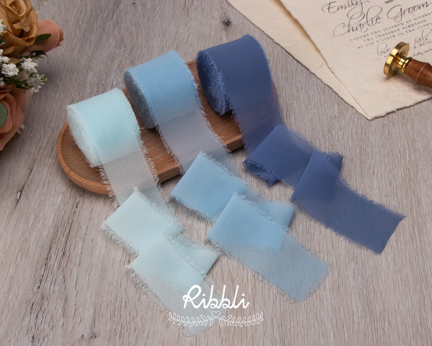 Ribbli Chiffon Ribbon 1.5 inch x 30 Yard Handmade Silk Ribbon,Light Blue/Baby Blue/Dusty Blue Fringe Chiffon Ribbon for Wedding Invitations, Bridal Bouquets Wrapping, Flower Arrangement Decoration
