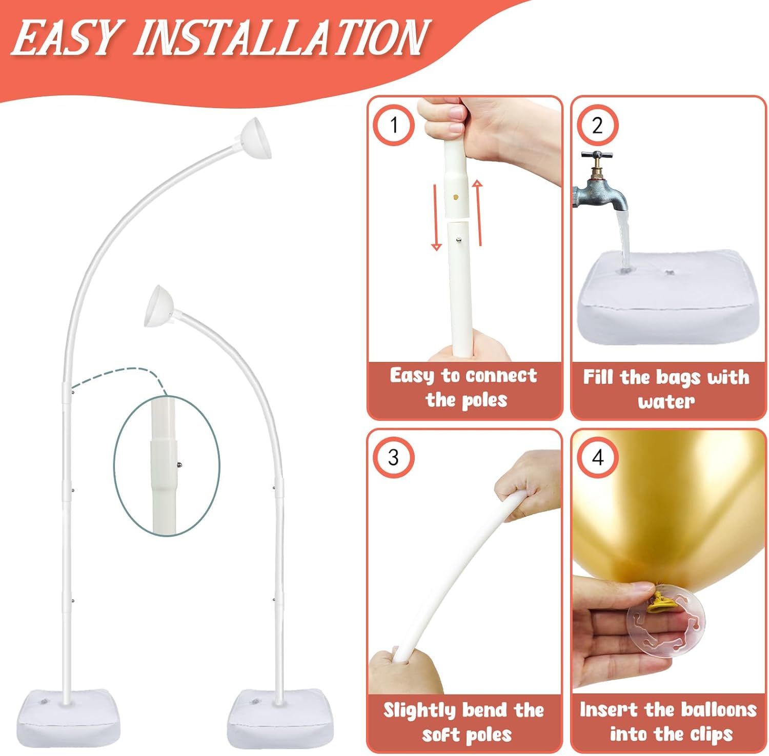 - Complete Package: Includes curved top arch stand, water fillable bags, heavy-duty PVC bases, connectors, and balloon ring clips.