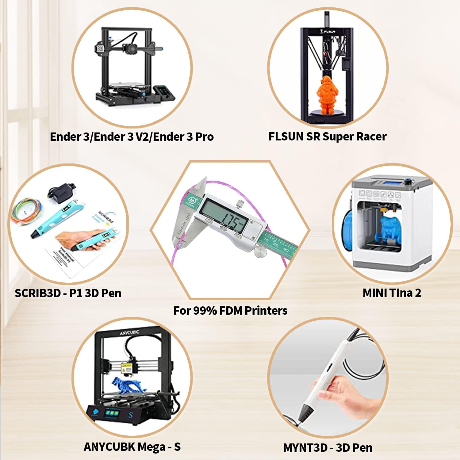 - 【Wide Compatibility】--- Works and harmonizes perfectly with all common 1.75mm FDM 3D printers,Spool Diameter: 8" - Spool Width: 2.5" - Spool Hub Hole Diameter: 2.20"