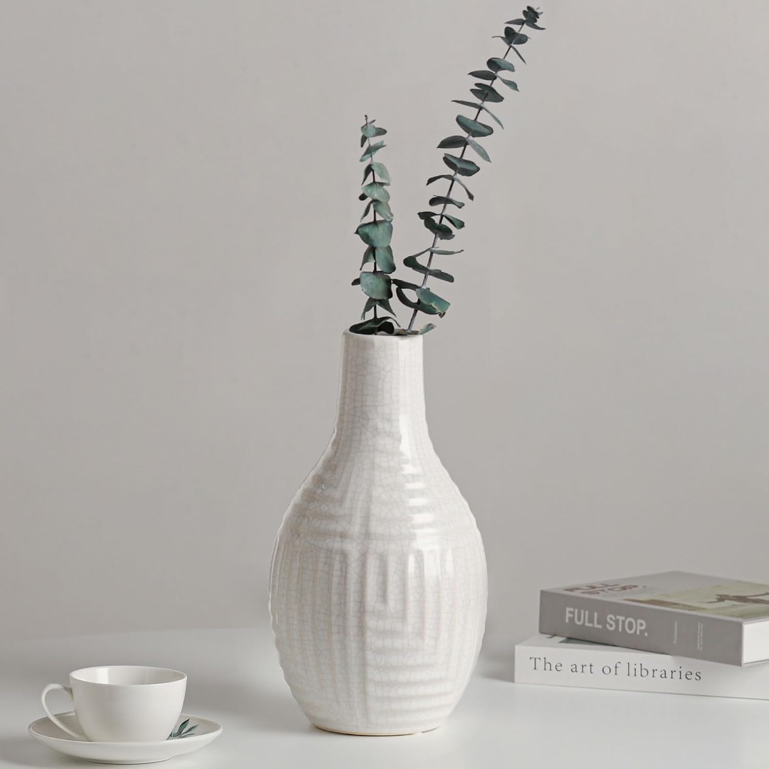 hjn hjn White Vase -Ceramic Vase for Home Decor, Modern Decor Vases for Living Room/Bookshelf/Mantel/Home Decor Accents - 9.4" H
