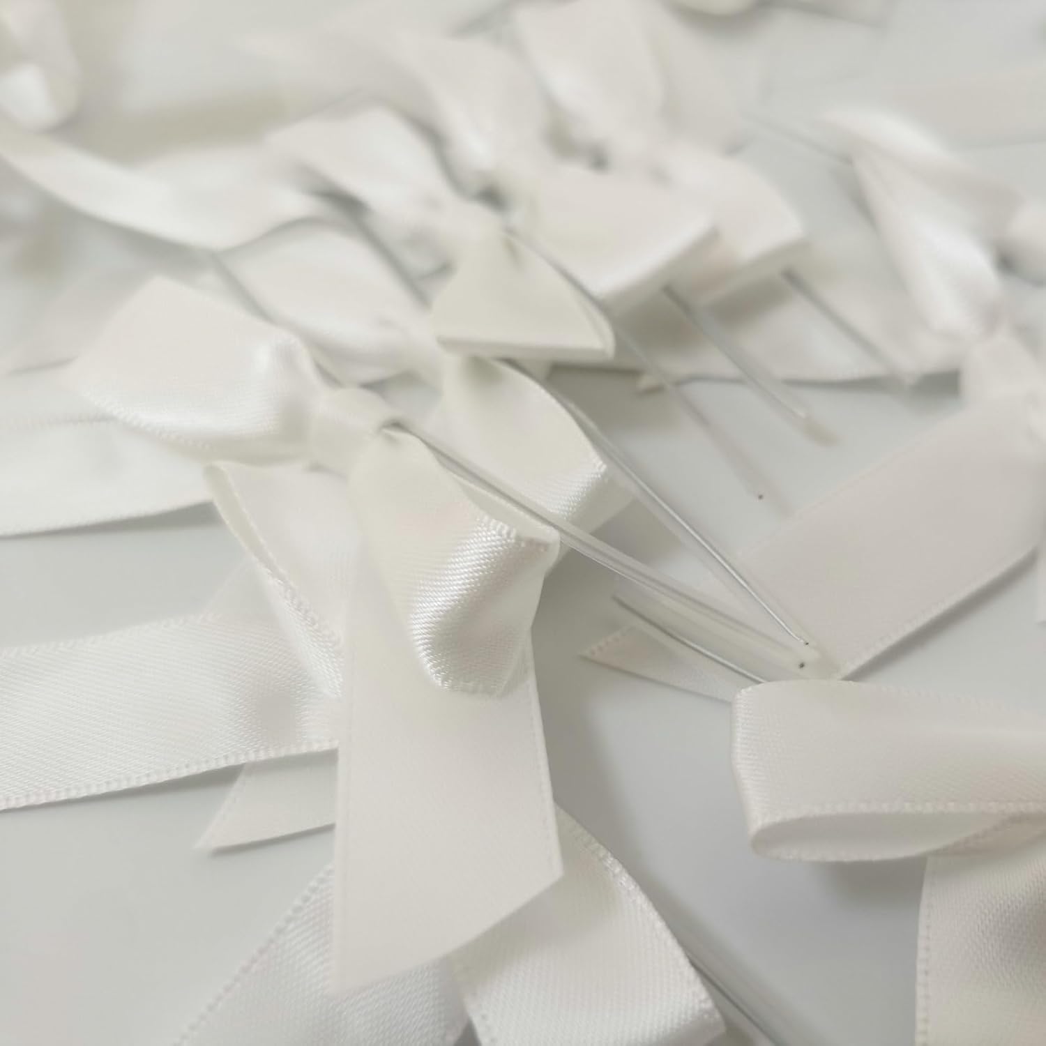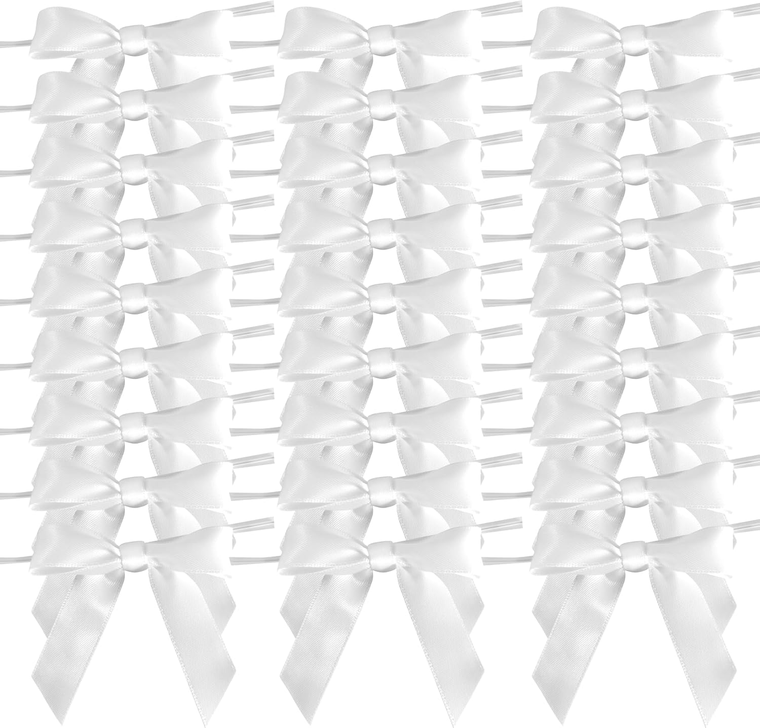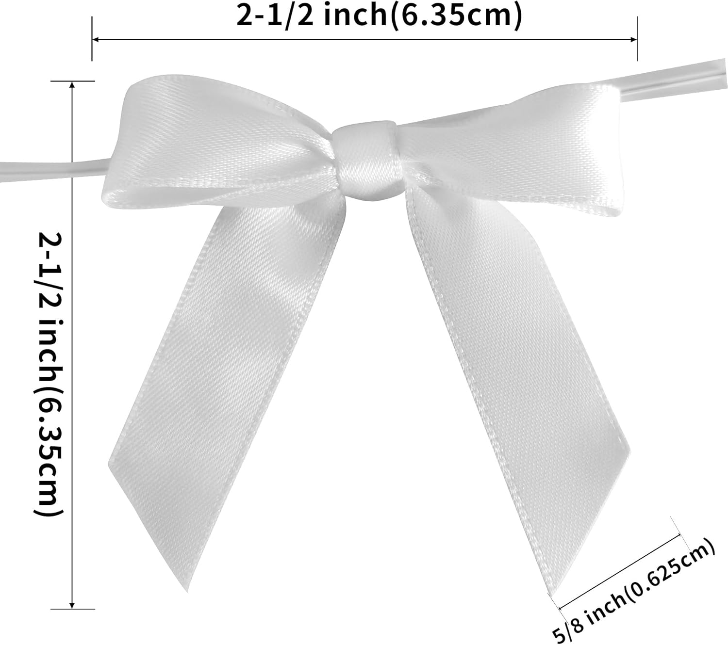 50pcs 2-1/2" White Satin Ribbon Bows with Twist Ties for Wedding Box Gift Wrapping Packing Christmas Decoration (White)